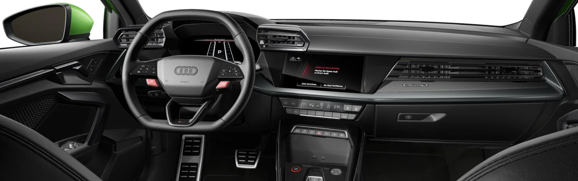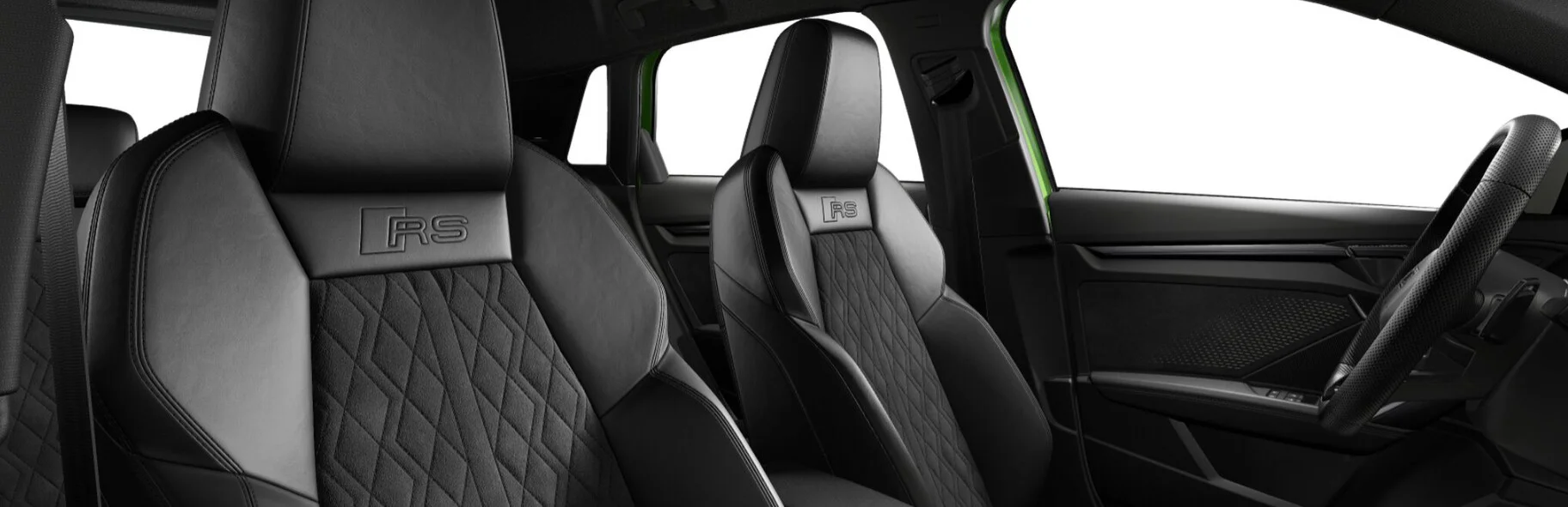 Wnętrze Audi RS 3 Sportback zostało zaprojektowane z myślą o sportowym komforcie i nowoczesnych technologiach. Przestronna kabina oferuje najwyższej jakości materiały, takie jak skóra Nappa z kontrastowymi przeszyciami, oraz sportowe fotele RS z regulacją i logo RS, które zapewniają doskonałe podparcie podczas dynamicznej jazdy. Kierownica RS z perforowaną skórą i łopatkami do zmiany biegów gwarantuje precyzyjne prowadzenie, a cyfrowy kokpit Audi Virtual Cockpit z personalizowanym wyświetlaczem dostarcza kluczowych informacji o pojazdu, takich jak tryby jazdy, osiągi czy pomiar przeciążeń.