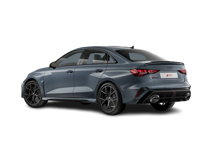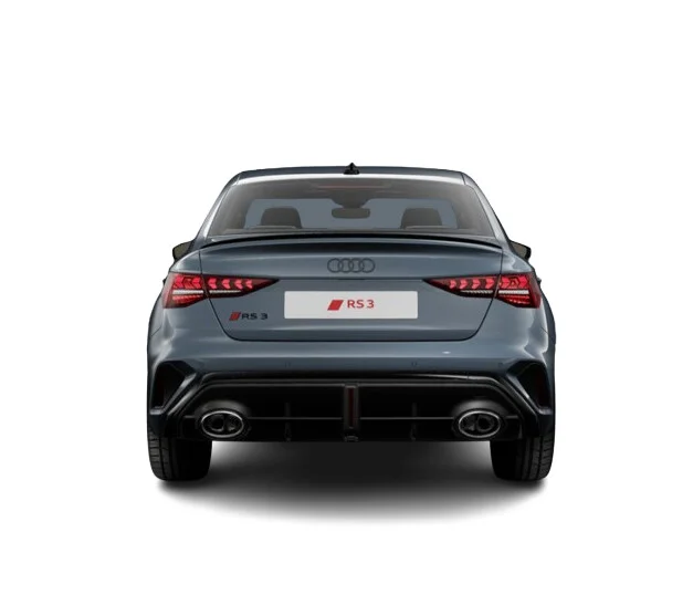 Zewnętrzny wygląd Audi RS 3 Limousine wyróżnia się agresywnymi liniami i muskularną sylwetką, które podkreślają jego sportowy charakter. Charakterystyczny grill Singleframe z czarnymi detalami, szerokie nadkola oraz wyraziste reflektory LED Matrix nadają pojazdowi agresywny, a jednocześnie elegancki wygląd. Sportowe detale, takie jak 19-calowe felgi aluminiowe, poszerzone zderzaki RS, podwójne końcówki wydechu oraz dyfuzor RS, potwierdzają wyścigowy charakter tego luksusowego sedana.