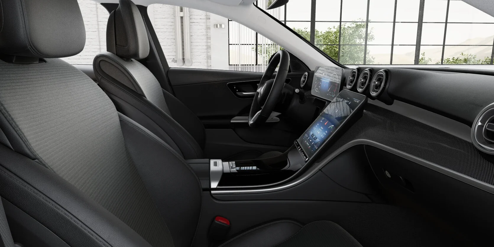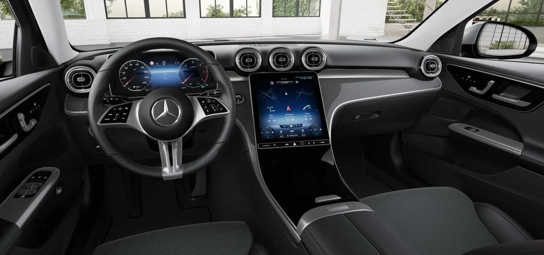 Wnętrze Mercedesa C 220 d 4MATIC Estate to połączenie luksusu i funkcjonalności. Przestronna kabina oferuje najwyższej jakości materiały, takie jak skóra i aluminium, oraz ergonomiczne fotele z regulacją elektryczną, które zapewniają maksymalny komfort podczas dłuższych podróży. Nowoczesny system multimedialny MBUX z dużym ekranem dotykowym, nawigacją oraz integracją smartfona przez Apple CarPlay i Android Auto, zapewnia pełną kontrolę nad funkcjami pojazdu. Cyfrowy kokpit z personalizowanym wyświetlaczem dostarcza wszystkie najważniejsze informacje, zwiększając komfort i bezpieczeństwo jazdy.