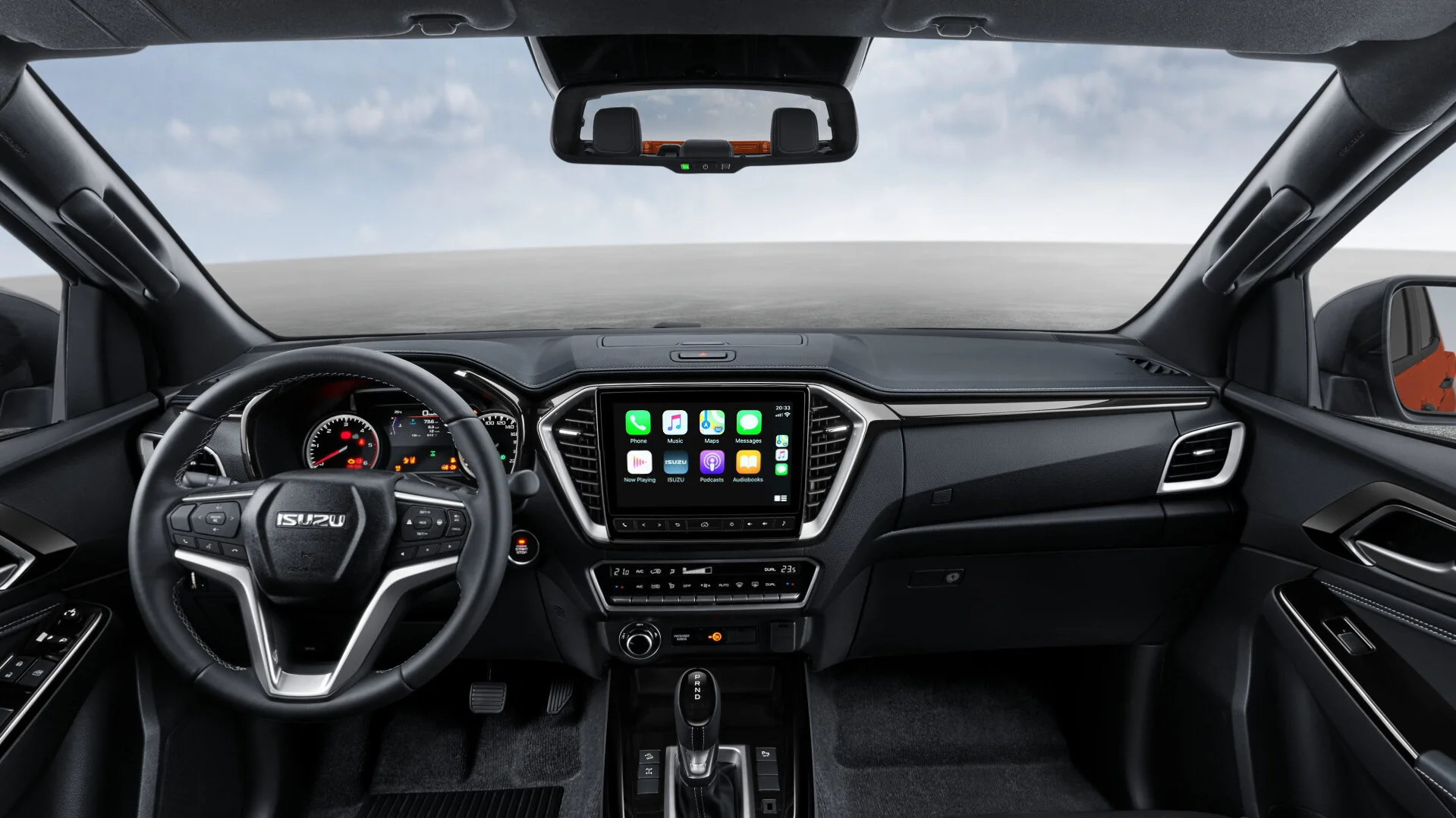 Wnętrze Isuzu D-Max LSE zaskakuje wysokim poziomem komfortu, oferując przestronną i ergonomicznie zaprojektowaną kabinę. Fotele są pokryte wytrzymałą tapicerką z ekoskóry, zapewniając wygodę nawet podczas długich podróży. System multimedialny z 9-calowym ekranem dotykowym obsługuje nawigację, Apple CarPlay i Android Auto, co umożliwia pełną integrację smartfona i zapewnia łatwy dostęp do multimediów. Klimatyzacja dwustrefowa, liczne schowki oraz wygodne fotele sprawiają, że wnętrze D-Max LSE jest komfortowe i praktyczne, nawet podczas intensywnego użytkowania.