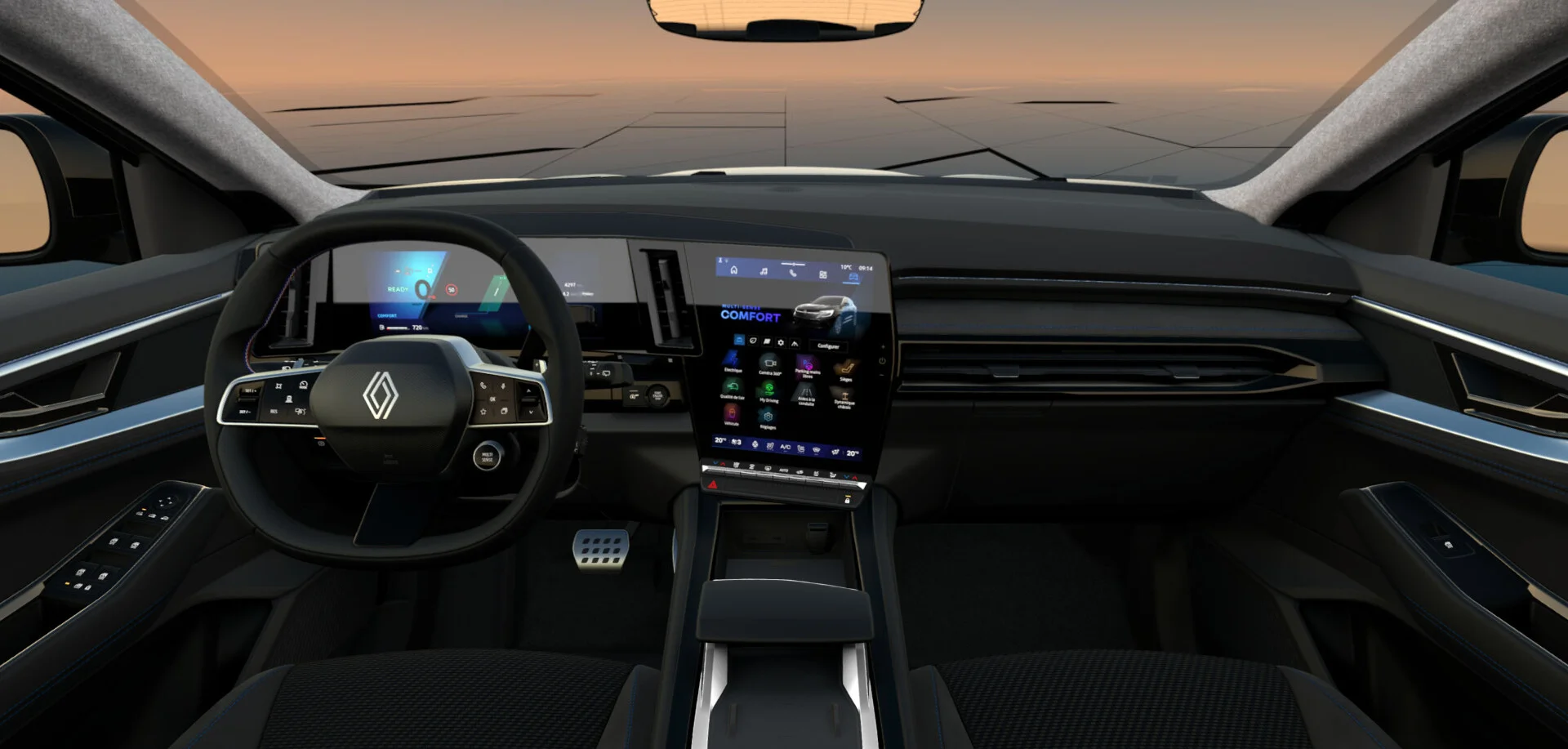 Wnętrze Renault Austral Iconic Esprit Alpine to przestrzeń stworzona z myślą o komforcie i nowoczesności. Kabina została wykończona materiałami najwyższej jakości, a ergonomiczne fotele z regulacją elektryczną oferują wygodę zarówno dla kierowcy, jak i pasażerów. Na pokładzie znajduje się zaawansowany system multimedialny z dużym 12-calowym ekranem dotykowym, który obsługuje nawigację, multimedia oraz integrację z Apple CarPlay i Android Auto, co zapewnia łatwy dostęp do ulubionych aplikacji. Dodatkowo, cyfrowy zestaw wskaźników dostarcza kierowcy wszystkie kluczowe informacje w przejrzysty sposób.
