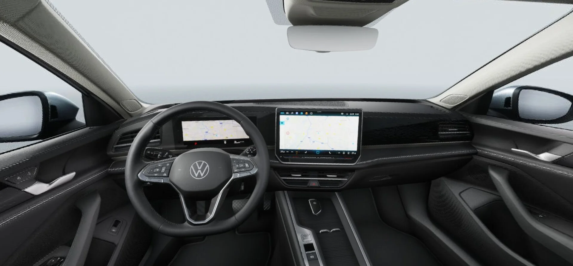Wnętrze Volkswagena Passata Kombi to przestrzeń zaprojektowana z myślą o komforcie i funkcjonalności. Kabina wykończona jest materiałami wysokiej jakości, a wygodne fotele oferują komfort zarówno dla kierowcy, jak i pasażerów. Na pokładzie znajduje się nowoczesny system multimedialny z dużym ekranem dotykowym, który obsługuje nawigację, multimedia oraz integrację z Apple CarPlay i Android Auto, co zapewnia łatwy dostęp do ulubionych aplikacji. Dodatkowo, cyfrowy zestaw wskaźników dostarcza kierowcy wszystkie kluczowe informacje w przejrzysty sposób.
