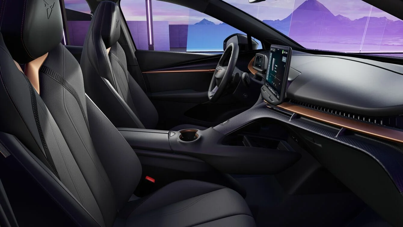 Wnętrze Cupra Tavascan to połączenie nowoczesnych technologii z komfortem. Kabina oferuje przestronność, której nie można się spodziewać po elektrycznym SUV-ie. Fotele wykończone materiałami wysokiej jakości, takie jak skóra i alcantara, zapewniają doskonałe wsparcie oraz komfort podczas długich tras. Na pokładzie pojazdu znajduje się system multimedialny z dużym ekranem dotykowym, który obsługuje nawigację, multimedia oraz integrację z urządzeniami mobilnymi za pomocą Apple CarPlay i Android Auto. Zestaw cyfrowych wskaźników daje kierowcy pełną kontrolę nad pojazdem, a przestronność wnętrza, z dużą ilością miejsca zarówno z przodu, jak i z tyłu, sprawia, że każda podróż staje się przyjemnością.