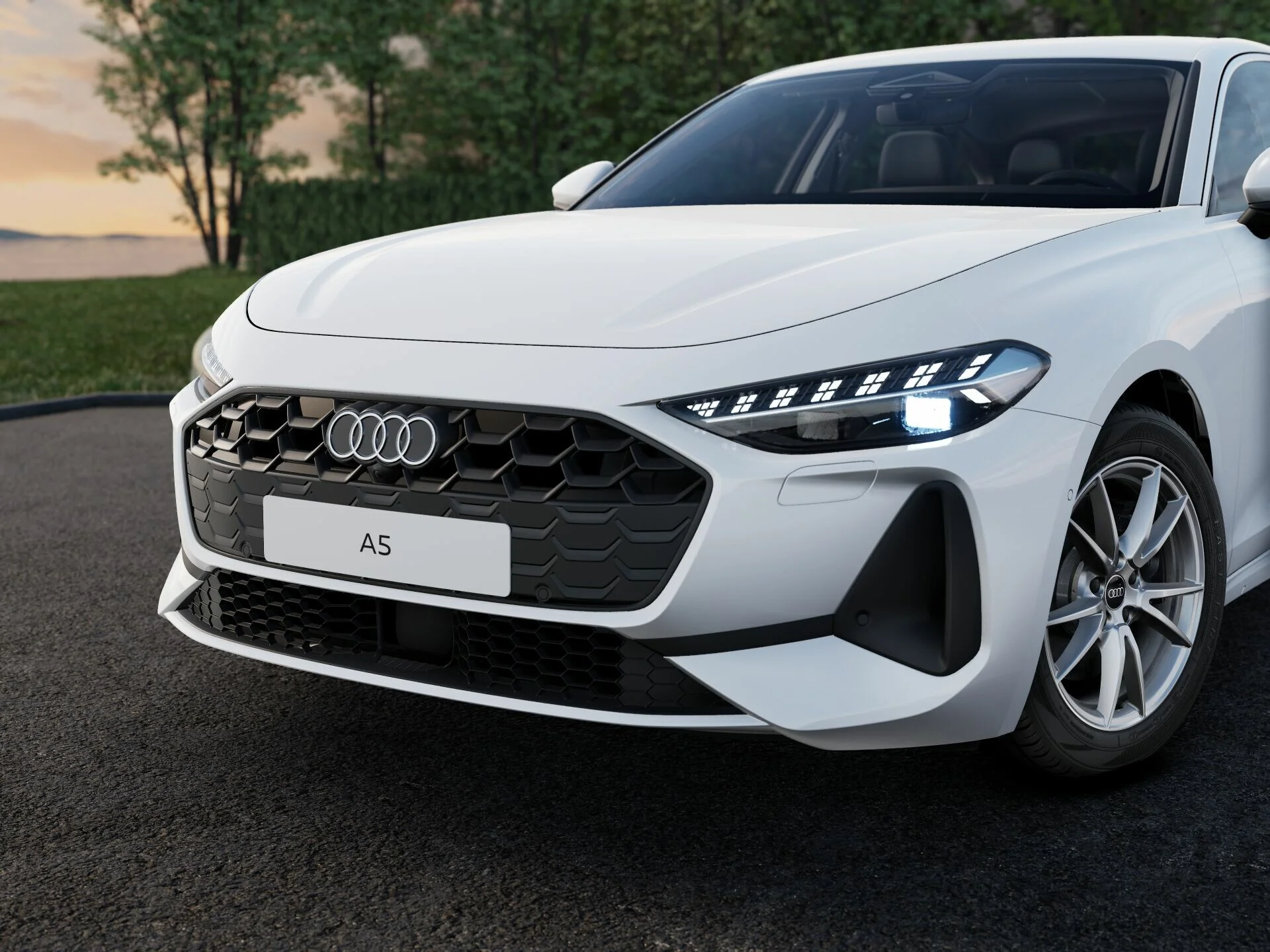 Zewnętrzny wygląd Audi A5 Limousine wyróżnia się nowoczesnymi i dynamicznymi liniami. Charakterystyczny grill Singleframe, smukłe reflektory LED oraz elegancka sylwetka nadają mu prestiżowy i sportowy wygląd. Stylowe detale, takie jak eleganckie felgi aluminiowe, subtelne chromowane akcenty i aerodynamiczne zderzaki, podkreślają jego luksusowy charakter, tworząc pojazd, który przyciąga wzrok na drodze.