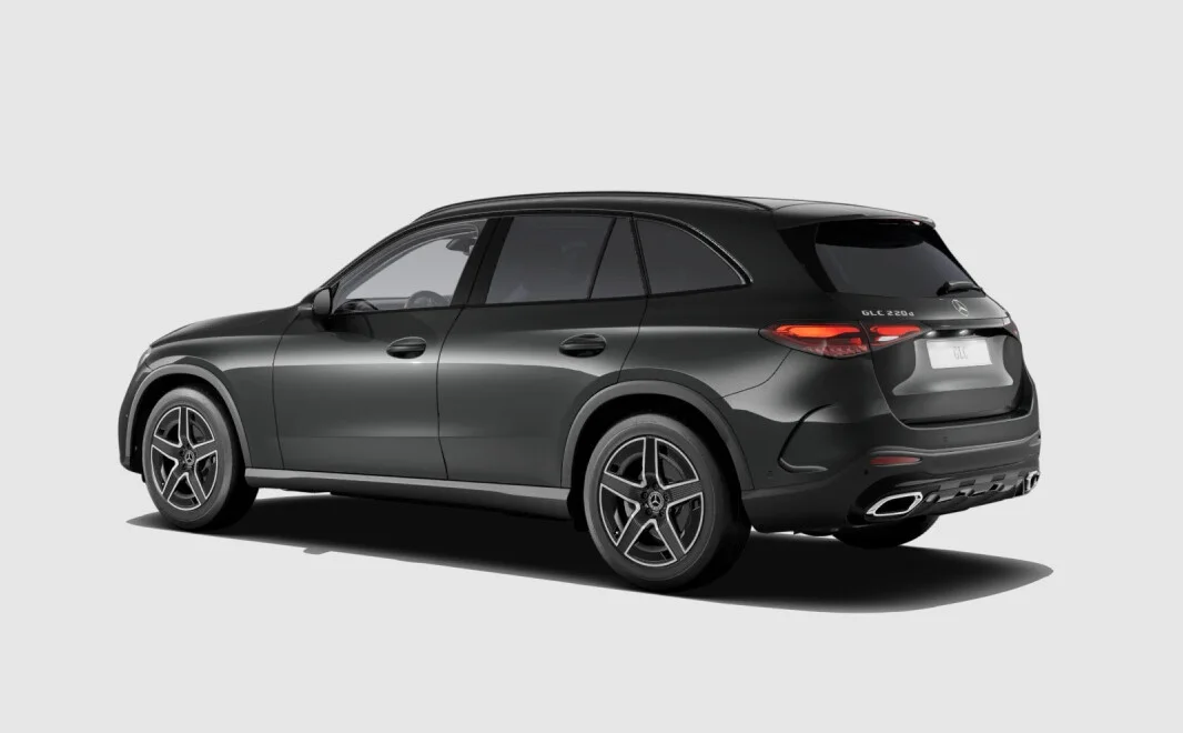 Mercedes-Benz GLC 220d 4MATIC przyciąga wzrok swoją elegancką sylwetką, która łączy potężne, ale zharmonizowane linie nadwozia z subtelnymi detalami. Charakterystyczna, duża atrapa chłodnicy z centralnym logo Mercedesa, smukłe reflektory LED oraz sportowe zderzaki nadają pojazdowi prestiżowy i nowoczesny wygląd. Z boku, pojazd wyróżnia się wyrazistymi liniami nadwozia, które podkreślają jego dynamikę, a 19-calowe felgi aluminiowe i chromowane akcenty nadają mu eleganckiego charakteru. Tył pojazdu z delikatnym spoilerem, zgrabnymi reflektorami LED oraz wyważonym zderzakiem dopełnia całość, podkreślając sportowy, ale luksusowy wygląd.