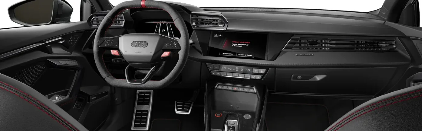 Wnętrze Audi RS 3 Limousine to połączenie luksusu, sportowego charakteru i zaawansowanej technologii. Kabina wykończona jest materiałami najwyższej jakości, takimi jak skóra, alcantara oraz elementy wykończeniowe w kolorze aluminium. Fotele sportowe RS zapewniają doskonałe wsparcie i komfort, zarówno podczas dynamicznej jazdy, jak i długich podróży. Na pokładzie znajduje się system multimedialny MMI Navigation plus z dużym ekranem dotykowym, który obsługuje nawigację, multimedia oraz integrację z urządzeniami mobilnymi za pomocą Apple CarPlay i Android Auto. Dodatkowo, system audio Bang & Olufsen zapewnia wyjątkową jakość dźwięku, a przestronny bagażnik oferuje wystarczającą ilość miejsca na codzienne zakupy i bagaże. Wnętrze RS 3 Limousine to idealne połączenie sportowej elegancji i komfortu.