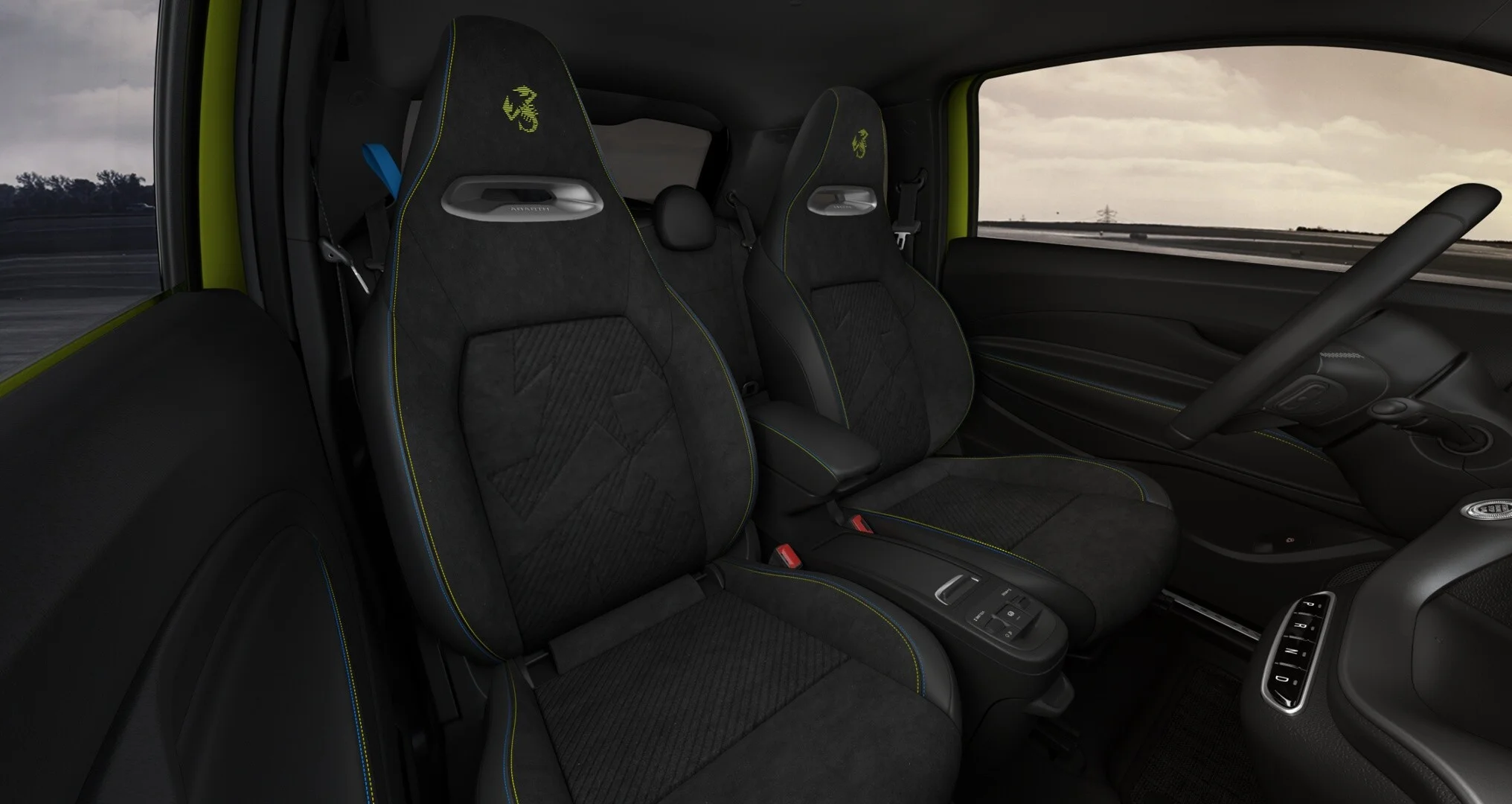 Fotele pokryte Alcantarą z wytłoczonym logo skorpiona