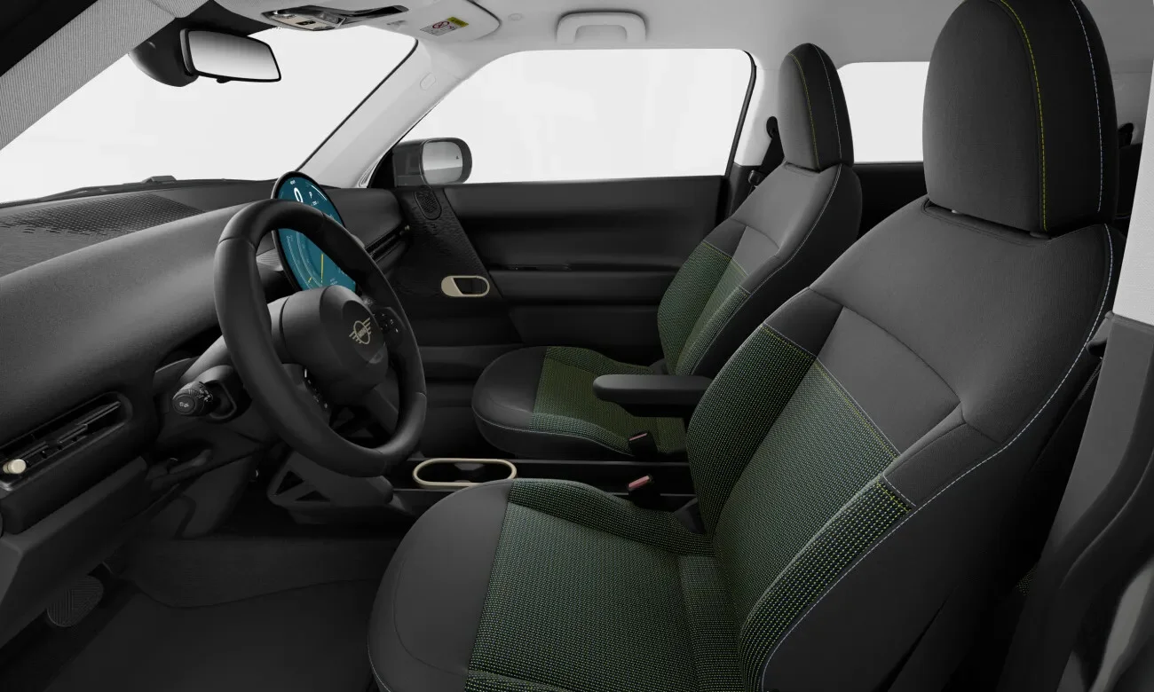 Wnętrze MINI Coopera E to połączenie komfortu i nowoczesnych technologii. Kabina została zaprojektowana z myślą o komforcie kierowcy oraz pasażerów, oferując wysokiej jakości materiały i przestronność, mimo kompaktowych rozmiarów pojazdu. Fotele są ergonomiczne i zapewniają komfort podczas codziennych dojazdów oraz długich podróży. Na pokładzie pojazdu znajduje się 8,8-calowy ekran dotykowy, który obsługuje system multimedialny, nawigację oraz integrację z urządzeniami mobilnymi za pomocą Apple CarPlay i Android Auto. Dodatkowo, system audio MINI zapewnia doskonałą jakość dźwięku, a przestronny bagażnik o pojemności 211 litrów zapewnia wystarczającą ilość miejsca na codzienne zakupy.