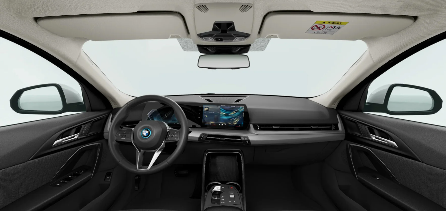 Wnętrze BMW iX2 eDrive20 to przestronność, komfort i nowoczesne technologie. Kabina pojazdu oferuje przestronne fotele, które zapewniają wygodę na długich trasach. Na pokładzie znajduje się system multimedialny z ekranem dotykowym o przekątnej 12,3 cala, który obsługuje nawigację, multimedia oraz integrację z urządzeniami mobilnymi za pomocą Apple CarPlay i Android Auto. Dodatkowo, system audio oferuje doskonałą jakość dźwięku, a automatyczna klimatyzacja zapewnia odpowiednią temperaturę wewnątrz pojazdu. Pojazd oferuje przestronny bagażnik, który zapewnia dużą ilość miejsca na bagaże i zakupy, co czyni iX2 idealnym wyborem na długie podróże.