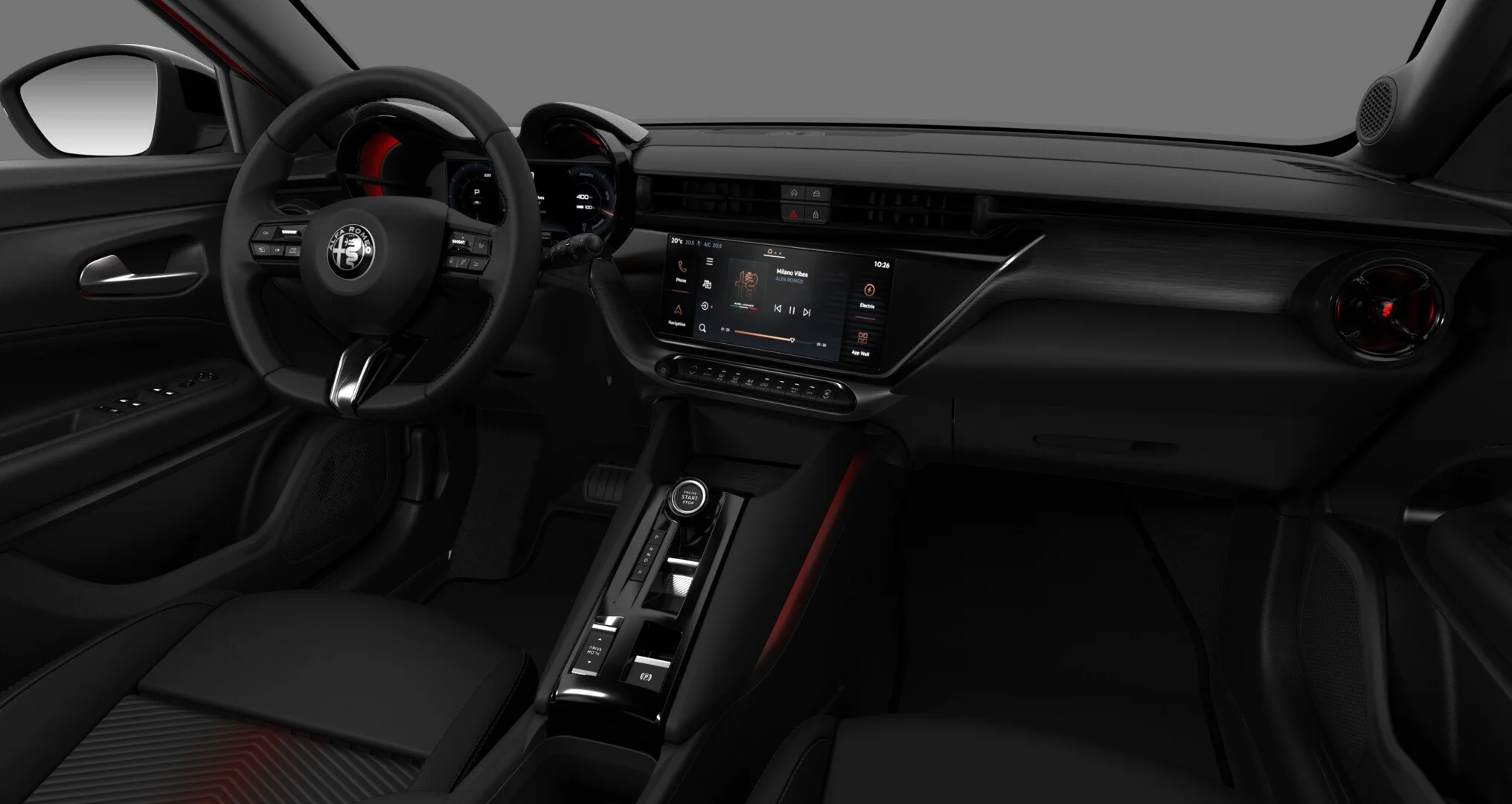 Wnętrze Junior Elettrica Speciale zostało zaprojektowane z myślą o komforcie i funkcjonalności. Kabina oferuje przestronne i ergonomiczne fotele, wykończone wysokiej jakości materiałami. Centralnym punktem deski rozdzielczej jest 10,25-calowy ekran dotykowy systemu multimedialnego Alfa Connect, obsługujący nawigację, Apple CarPlay oraz Android Auto. Dodatkowo, cyfrowy zestaw wskaźników dostarcza kierowcy wszystkich niezbędnych informacji w czytelny sposób. Wersja Speciale wyposażona jest również w sześć głośników, przyciemniane tylne szyby oraz skórzaną kierownicę, co podnosi komfort i przyjemność z jazdy.