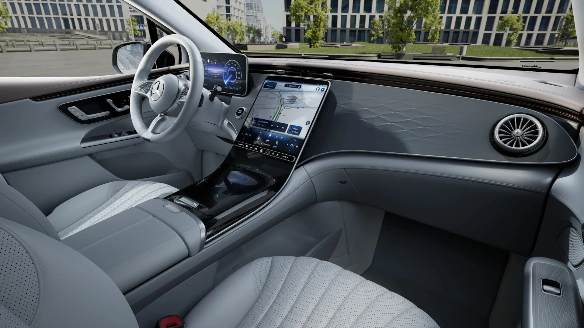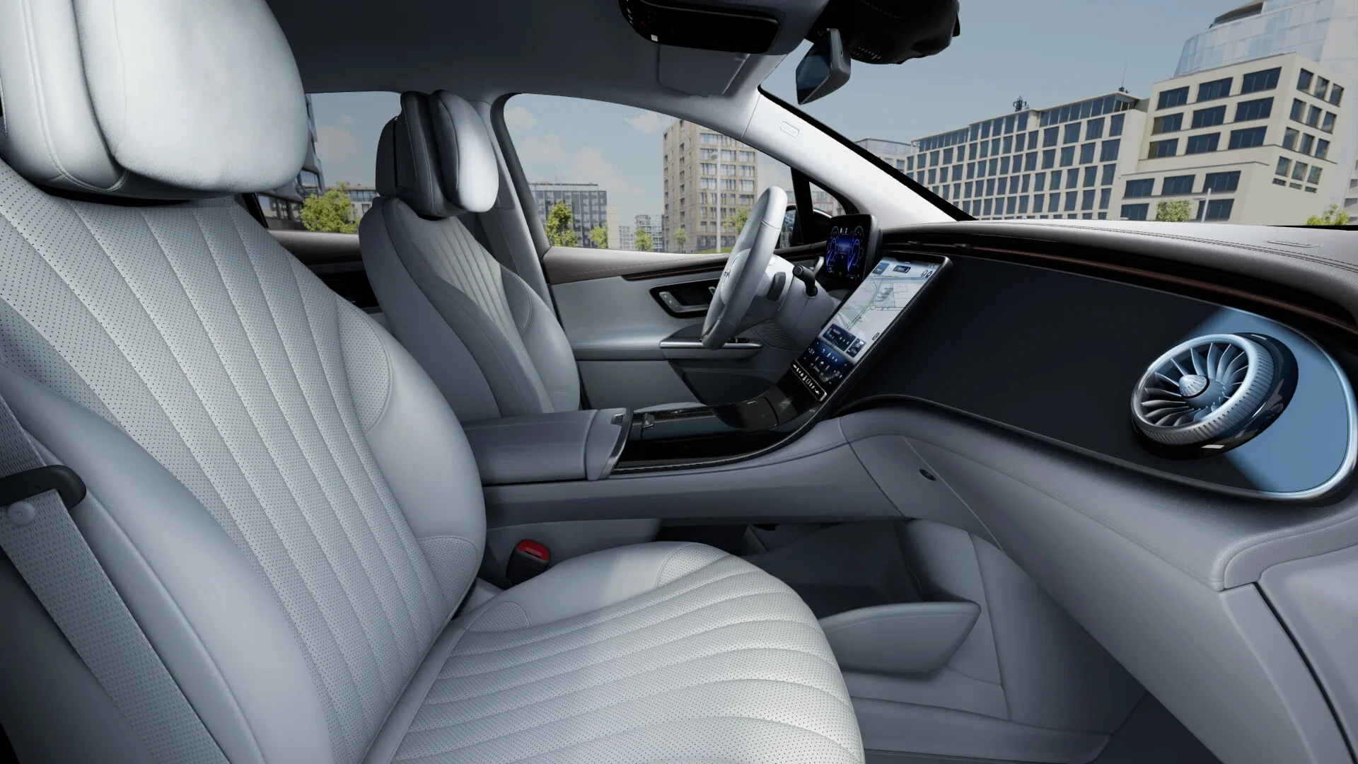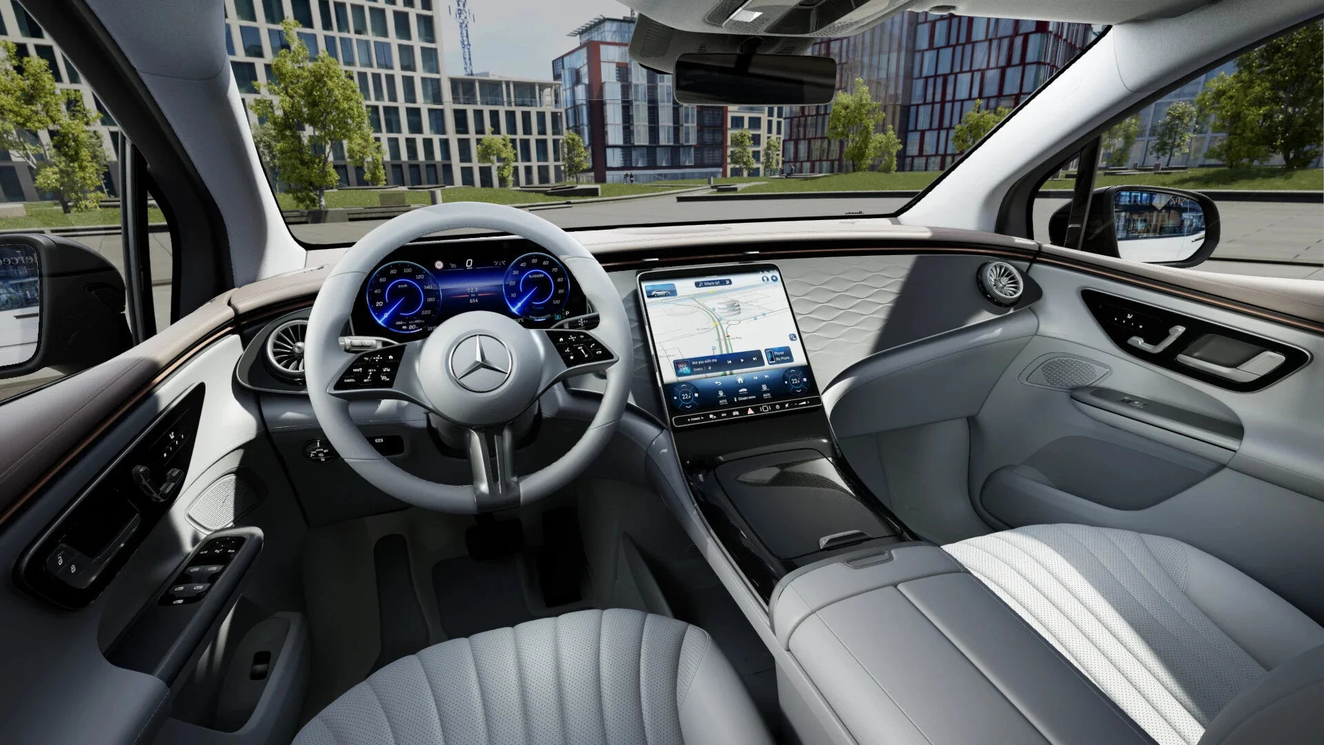 Wnętrze EQE 300 SUV zostało zaprojektowane z myślą o komforcie i nowoczesności, oferując bogate wyposażenie standardowe.