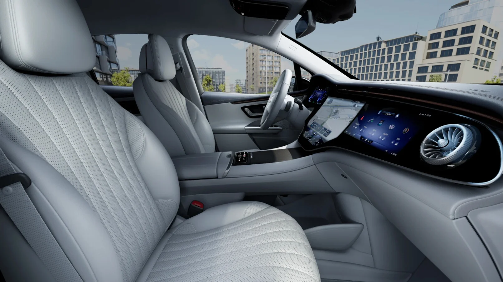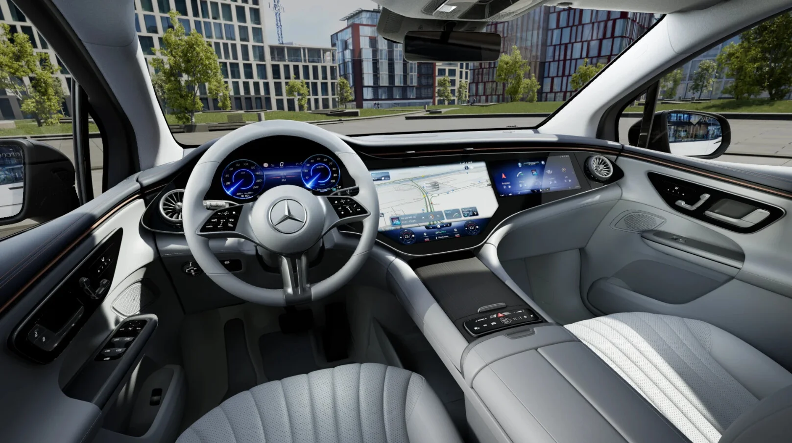 Wnętrze EQE 350 4MATIC SUV to przestronność, luksus i zaawansowana technologia. Kabina pojazdu została zaprojektowana z myślą o najwyższym komforcie kierowcy i pasażerów. Fotele, wykonane z wysokiej jakości materiałów, oferują wygodę i ergonomię na długich trasach, a nowoczesne wykończenia nadają wnętrzu elegancki i futurystyczny wygląd. Na pokładzie znajduje się system multimedialny MBUX z ekranem dotykowym 12,8 cala, który obsługuje nawigację, multimedia oraz integrację z urządzeniami mobilnymi za pomocą Apple CarPlay i Android Auto. Dodatkowo, system audio Burmester zapewnia wyjątkową jakość dźwięku, a automatyczna klimatyzacja 3-strefowa dba o komfortową temperaturę wewnątrz pojazdu. Pojazd oferuje przestronny bagażnik o pojemności 565 litrów, co zapewnia dużo miejsca na bagaże i zakupy.