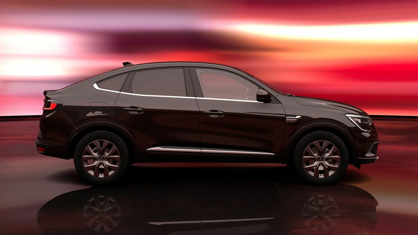 Renault Arkana Techno to SUV, który wyróżnia się unikalnym połączeniem elegancji i sportowego stylu. Jego dynamiczna sylwetka coupé, smukłe linie nadwozia i charakterystyczny grill z logo Renault nadają mu nowoczesny i wyrazisty wygląd. Reflektory LED oraz subtelne chromowane akcenty podkreślają prestiżowy charakter tego modelu, a podwyższony prześwit i masywne nadkola dodają mu wszechstronności.