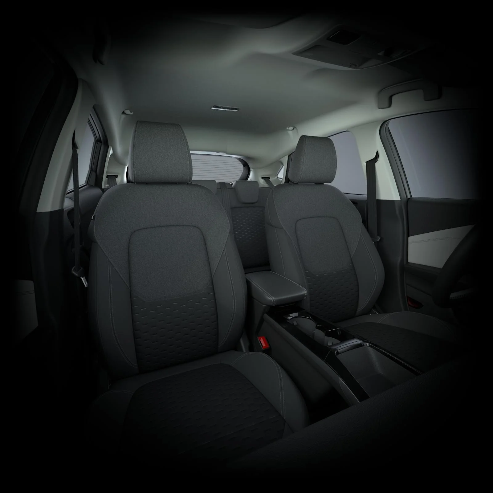 Kokpit oferuje nastrojowe oświetlenie z możliwością wyboru koloru, uchwyt zmiany biegów przy kierownicy oraz dodatkowe schowki – w tym Gigabox pod podłogą bagażnika i dodatkową przestrzeń ładunkową pod maską. Całość zaprojektowano z myślą o wygodzie użytkowania każdego dnia.