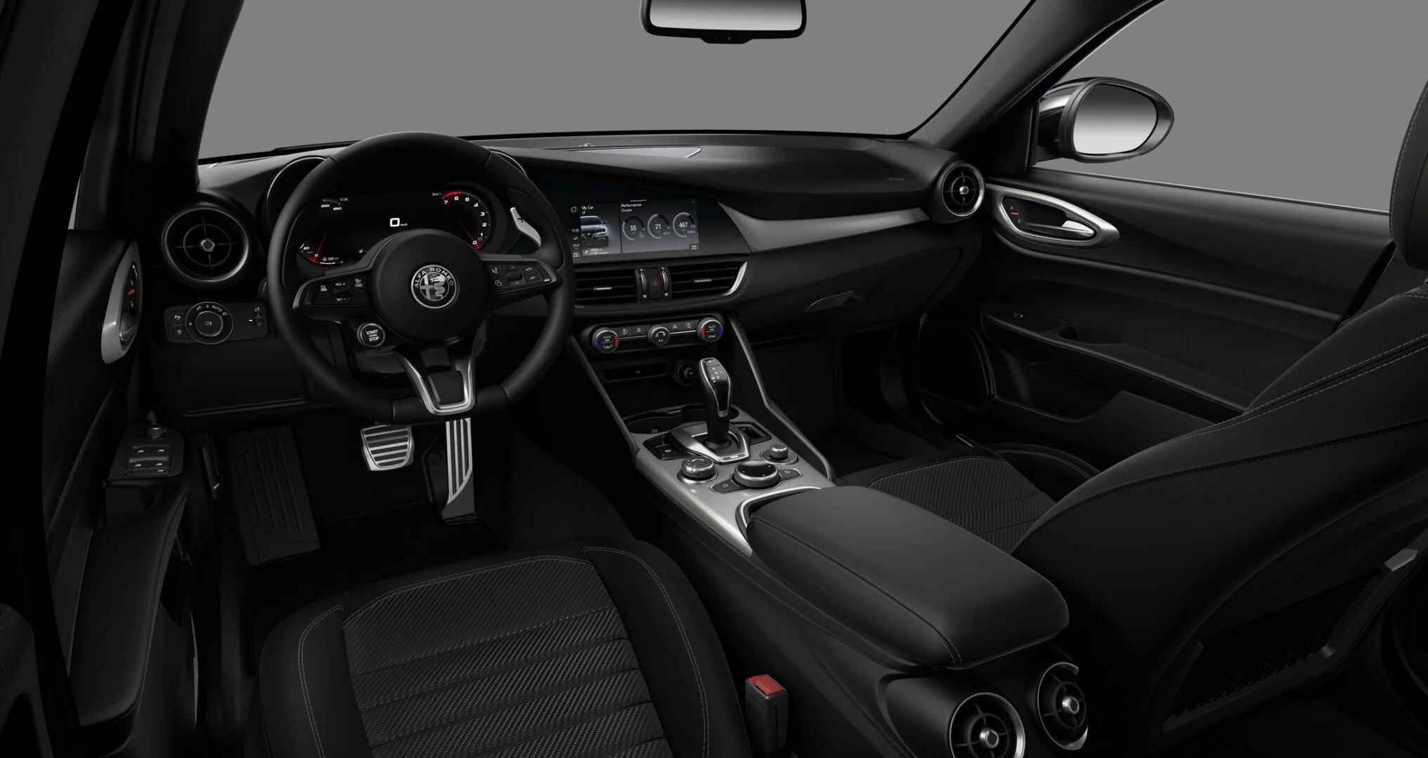 Giulia zachwyca proporcjami typowymi dla napędu na tył – długi przód, krótki tył i muskularne przetłoczenia. Wersja Sprint wyróżnia się sportowymi akcentami, felgami aluminiowymi o dynamicznym wzorze oraz charakterystycznym grillem „Scudetto”, który nadaje autu wyrazisty charakter.