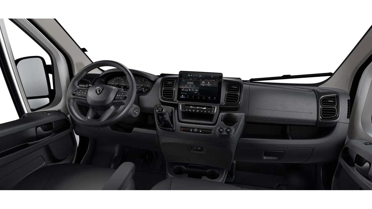 Mimo użytkowego charakteru, kabina Boxera została zaprojektowana z naciskiem na wygodę kierowcy i pasażerów. Ergonomiczne fotele, liczne schowki, uchwyty i możliwość zamiany środkowego fotela w mobilne biuro to elementy, które znacząco wpływają na komfort codziennej pracy.