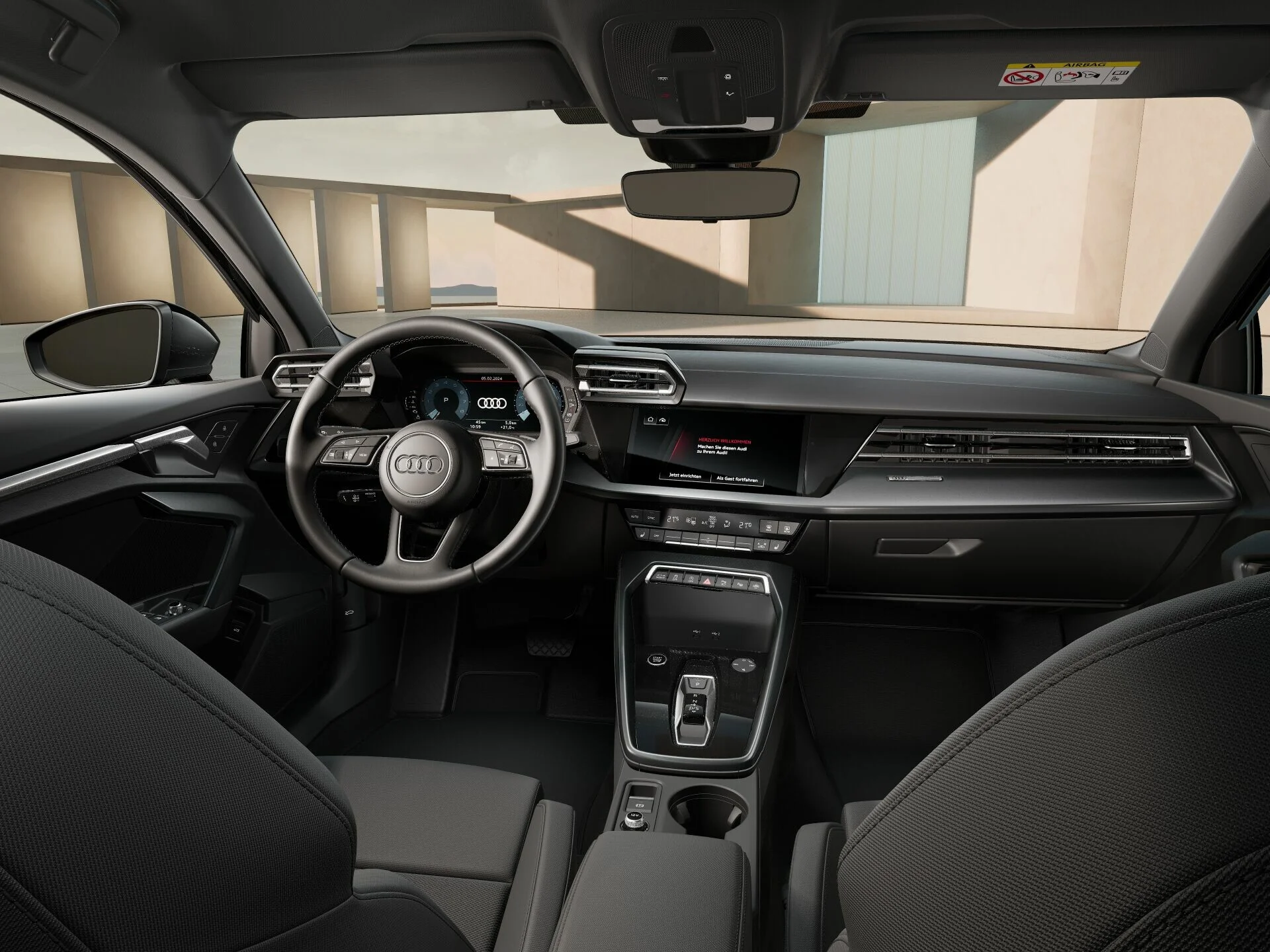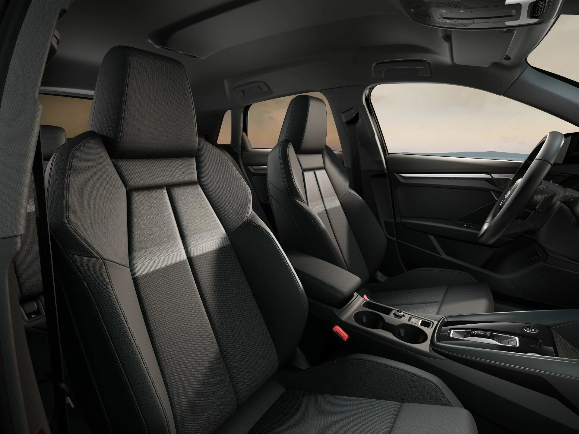Wnętrze Audi A3 Sportback oferuje przestrzeń dla pięciu osób oraz nowoczesny, cyfrowy kokpit z 10,25-calowym wyświetlaczem. System multimedialny MMI z dotykowym ekranem, Apple CarPlay i Android Auto, a także możliwość personalizacji oświetlenia ambientowego podkreślają nowoczesny charakter auta. Wnętrze wykonane jest z wysokiej jakości materiałów, a ergonomiczne fotele zapewniają komfort nawet podczas dłuższych podróży. Praktyczny bagażnik o pojemności 380 litrów (do 1200 litrów po złożeniu siedzeń) sprawia, że A3 jest funkcjonalny na co dzień.