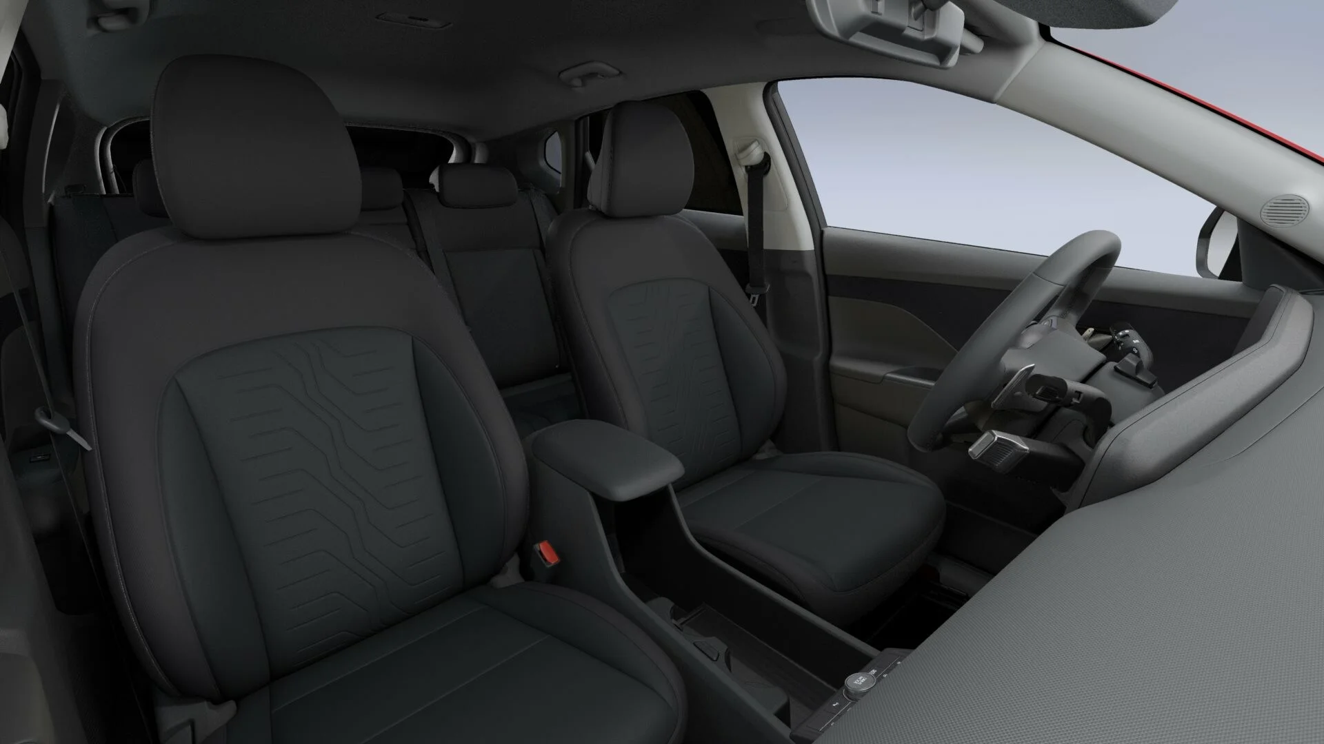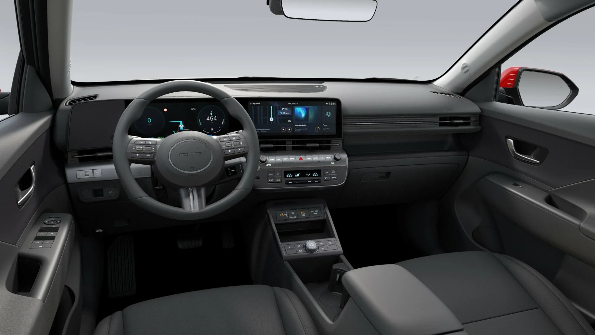 W środku znajdziesz przestronną kabinę z dwoma dużymi ekranami (kokpit cyfrowy i ekran multimedialny), wygodne fotele i wysokojakościowe wykończenia. Pomimo kompaktowych rozmiarów, KONA oferuje świetną organizację przestrzeni i bagażnik o pojemności 466 litrów (do linii dachu).