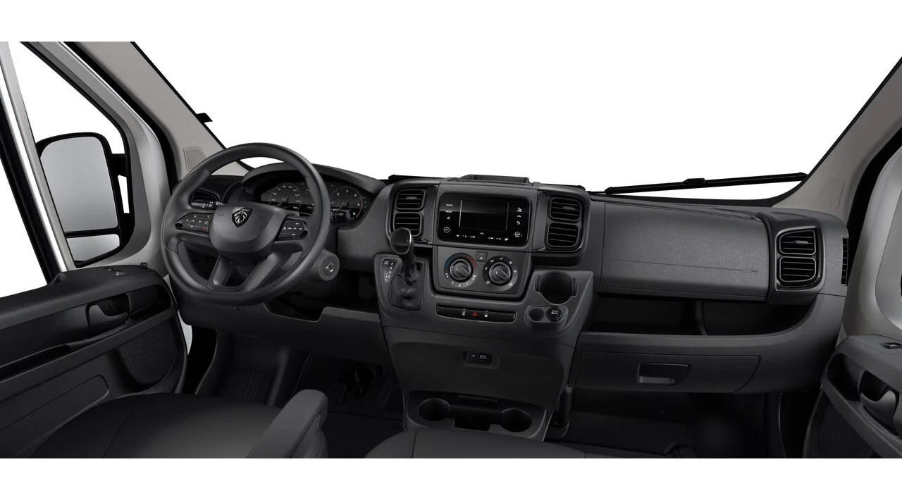 Kabina Boxera została zaprojektowana z myślą o wygodzie pracy. Ergonomiczne fotele, liczne praktyczne schowki oraz intuicyjnie rozmieszczone elementy sterowania ułatwiają codzienne użytkowanie. Wnętrze łączy trwałość materiałów z nowoczesnym wyglądem.