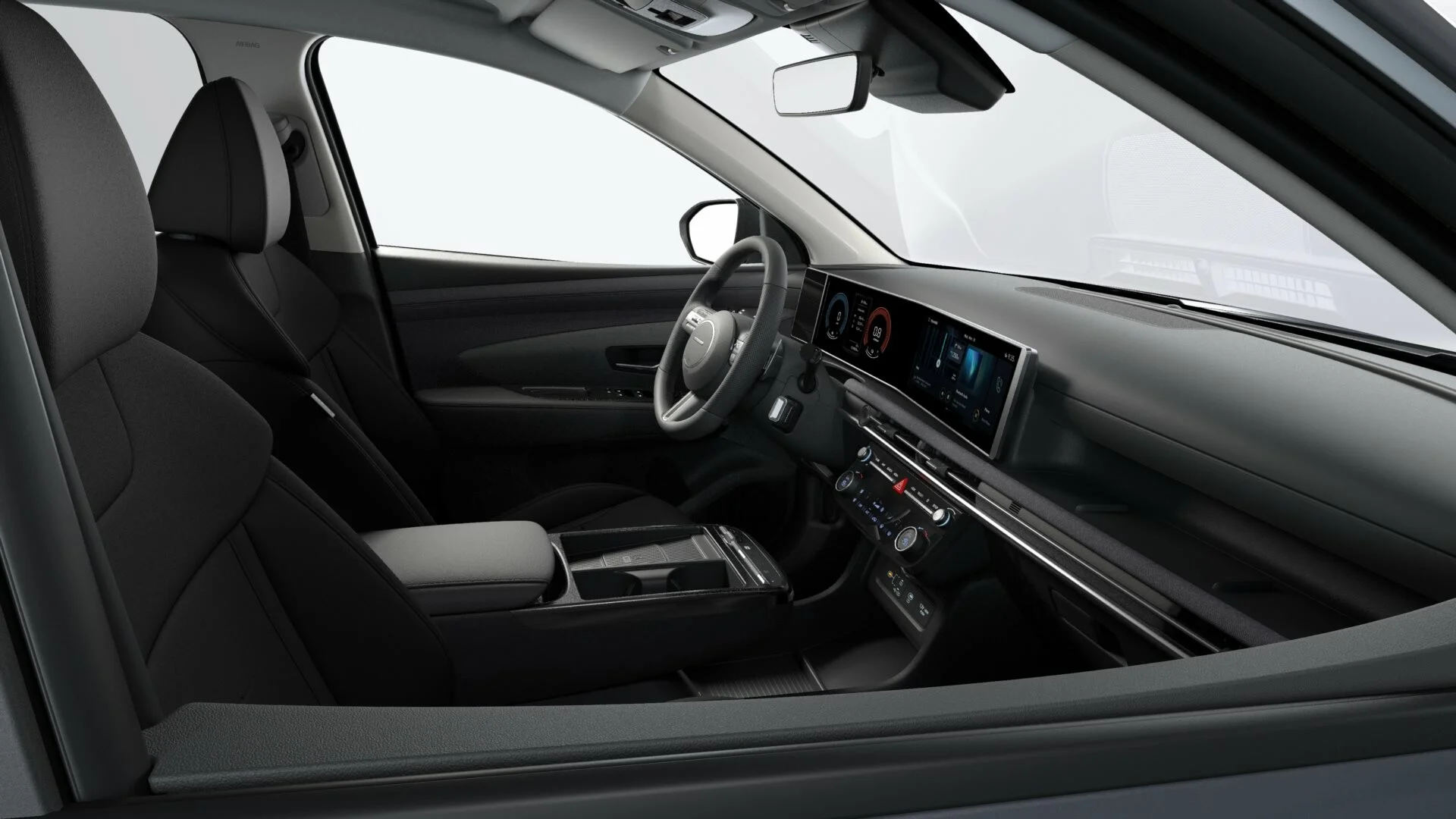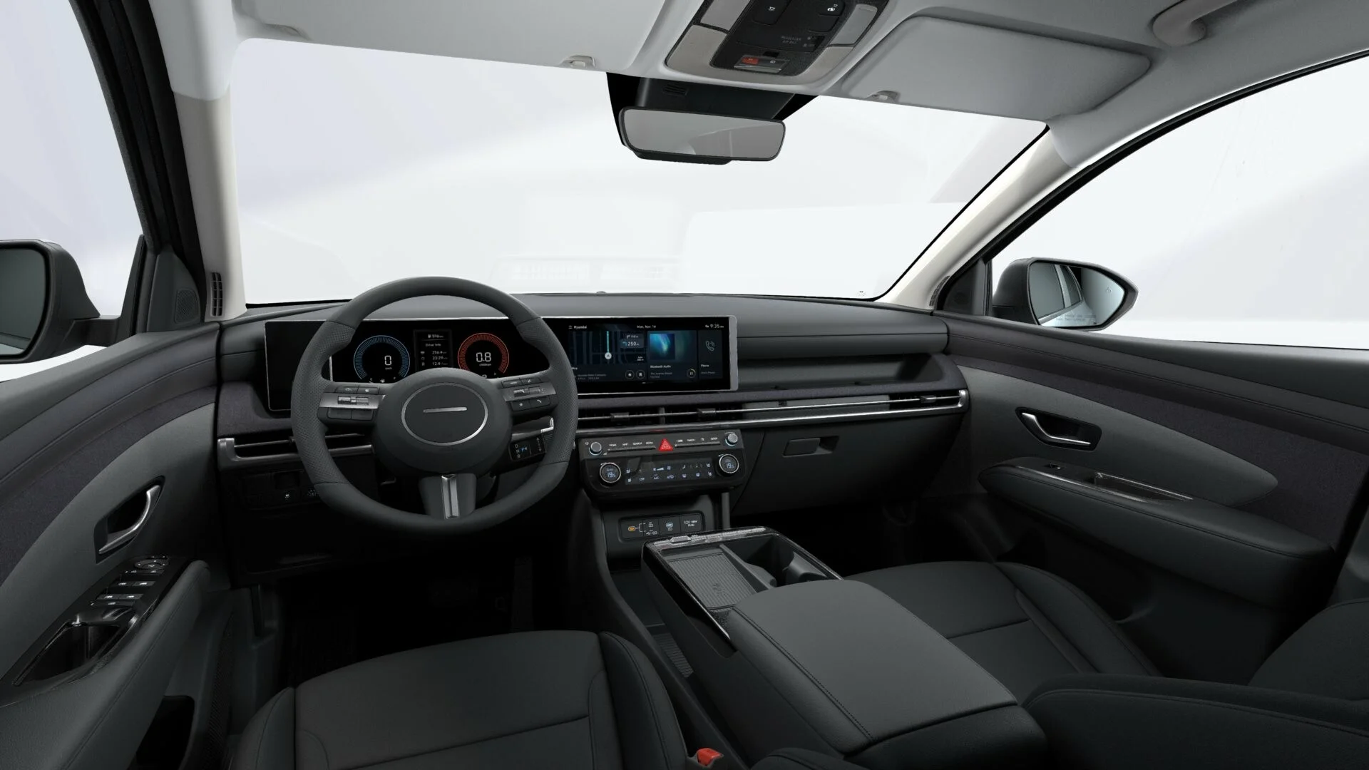 Wnętrze Hyundai Tucson Smart to przestronność i komfort, które zapewniają wygodę zarówno kierowcy, jak i pasażerom. Kabina została zaprojektowana z myślą o komforcie i funkcjonalności. Fotele zapewniają wygodę na długich trasach, a nowoczesny system multimedialny z ekranem dotykowym obsługuje nawigację, multimedia oraz integrację z urządzeniami mobilnymi dzięki Apple CarPlay i Android Auto. Zwiększona przestronność wnętrza oraz ergonomiczne rozmieszczenie przycisków zapewniają łatwą obsługę pojazdu. Tucson Smart oferuje również przestronny bagażnik o pojemności 503 litrów, co czyni go pojazdem wyjątkowo funkcjonalnym, gotowym na każdy rodzaj podróży.