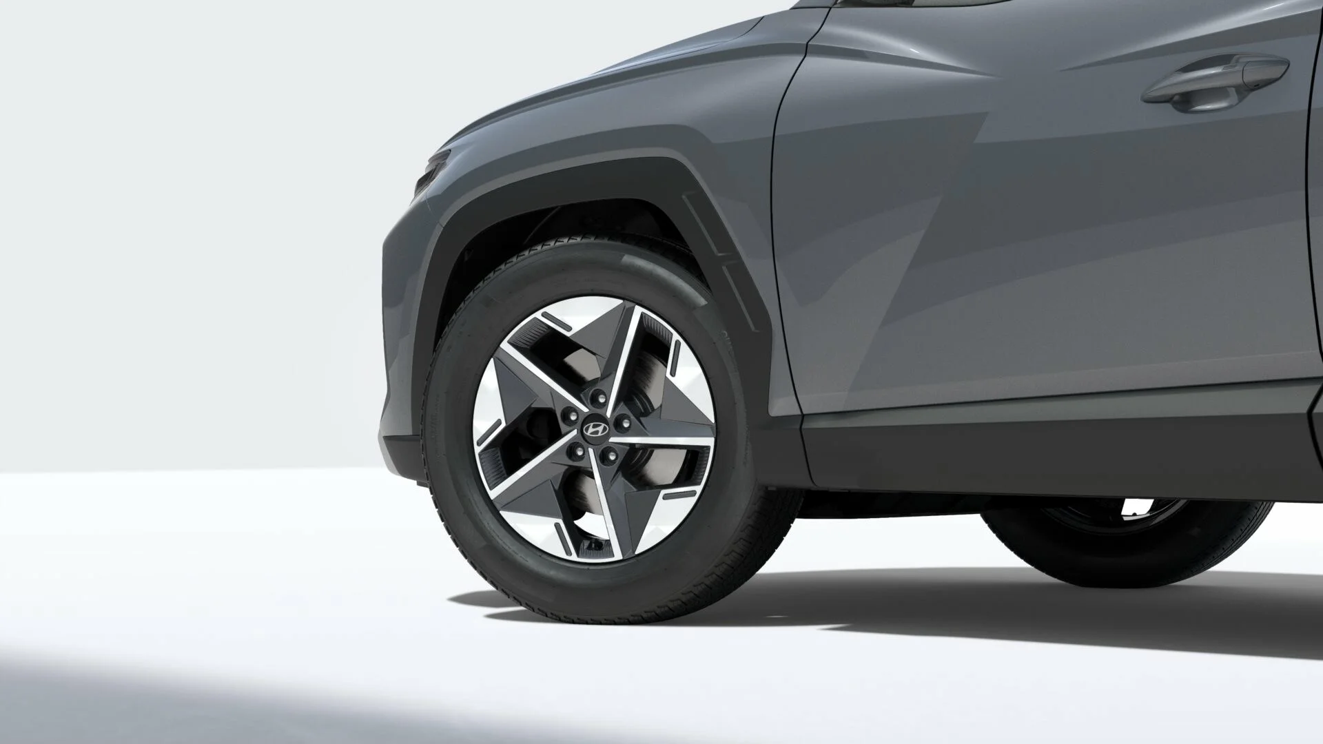 Hyundai Tucson Smart wyróżnia się dynamiczną i nowoczesną sylwetką, która łączy elegancję z funkcjonalnością. Zewnętrzne akcenty, takie jak wyrazisty grill, smukłe reflektory LED oraz opływowe linie nadwozia, nadają pojazdowi wyjątkowy wygląd, który przyciąga wzrok na drodze. Wersja Smart charakteryzuje się 17-calowymi felgami aluminiowymi, chromowanymi detalami oraz aerodynamicznymi kształtami, które poprawiają wydajność pojazdu. Tucson jest zarówno stylowy, jak i praktyczny, doskonale sprawdzając się w miejskim ruchu oraz w podróżach poza miastem.