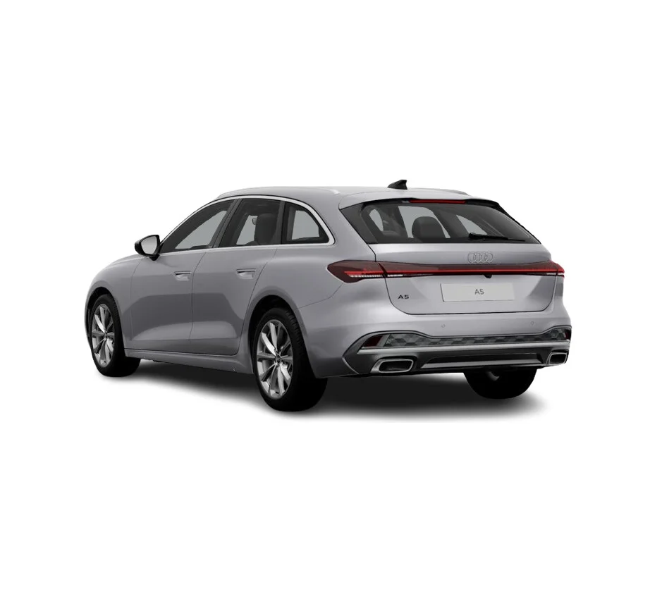 Audi A5 Avant to stylowe kombi, które łączy sportową sylwetkę z funkcjonalnością. Rozciągnięta linia boczna, nisko opadający dach i nowoczesne reflektory LED nadają mu dynamiczny i nowoczesny wygląd. Charakterystyczne przetłoczenia podkreślają szerokość nadwozia, a muskularny tył zapewnia wrażenie solidności i pewności.