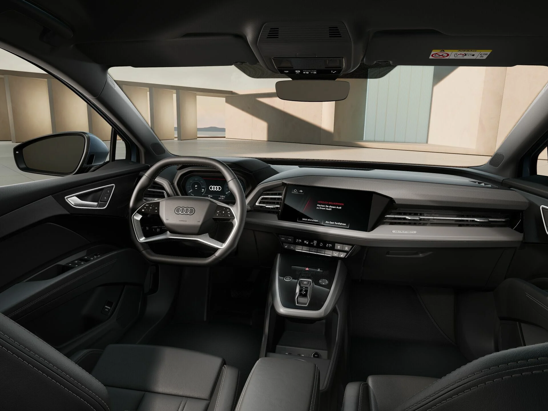 Audi Q4 40 e-tron to kompaktowy SUV o dynamicznej sylwetce, który łączy prestiż marki Audi z nowoczesną technologią napędu elektrycznego. Charakterystyczny grill Singleframe, ostre linie nadwozia i nowoczesne reflektory LED podkreślają futurystyczny styl auta. Wnętrze oferuje cyfrowy kokpit Audi Virtual Cockpit, duży ekran systemu MMI, wysokiej jakości materiały wykończeniowe oraz przestrzeń dla pięciu osób.