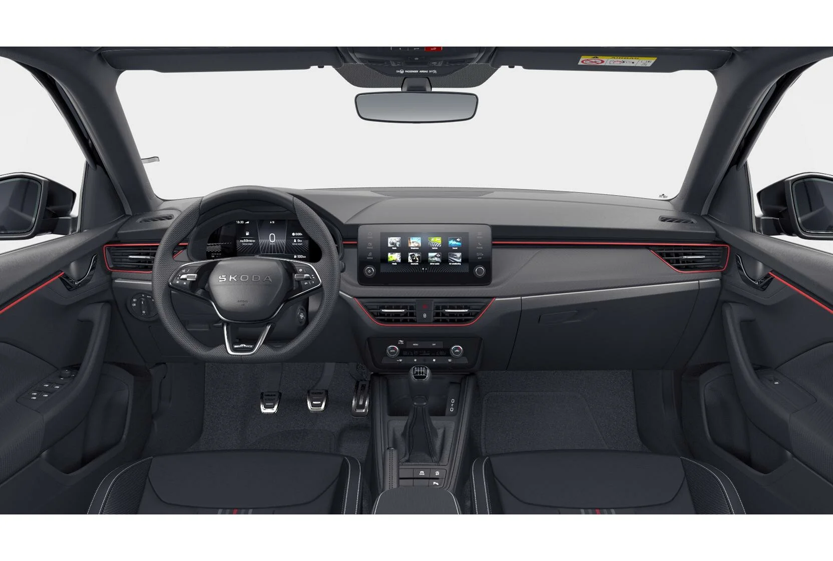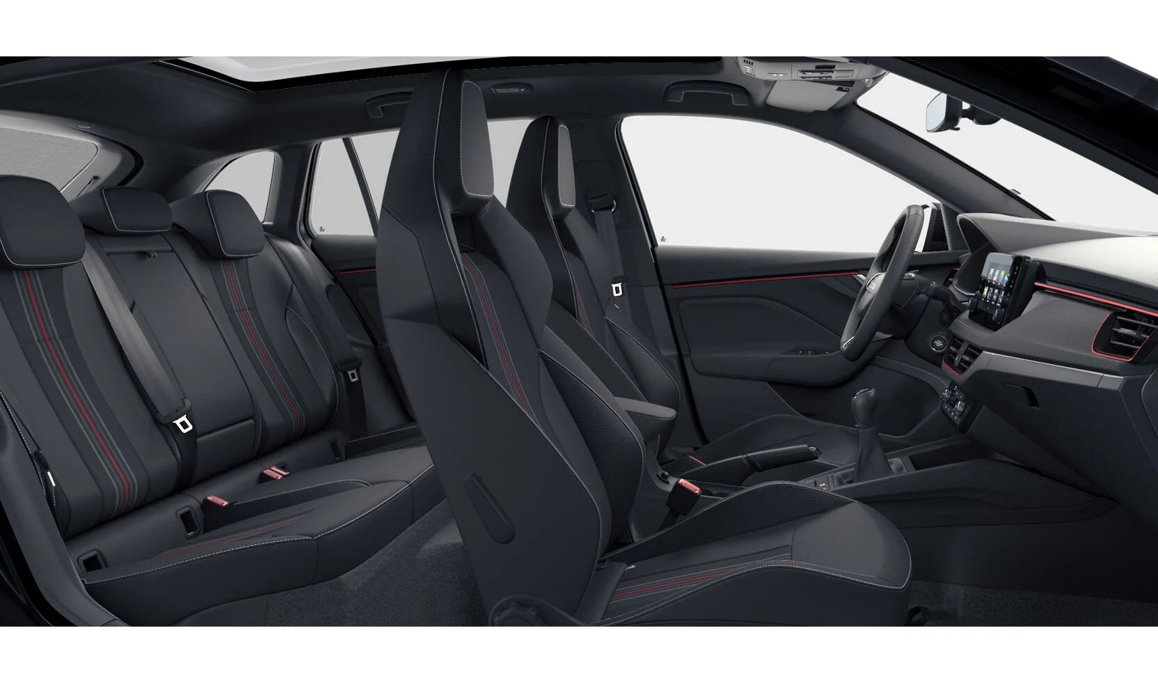 W kabinie Scala Monte Carlo oferuje wszystko, czego potrzeba do komfortowej jazdy – cyfrowe wskaźniki, sportowa kierownica, dobrej jakości materiały i czerwone detale wyróżniające tę wersję. Przestrzeń dla pasażerów i pojemny bagażnik czynią z niej funkcjonalne auto na co dzień i dłuższe trasy.