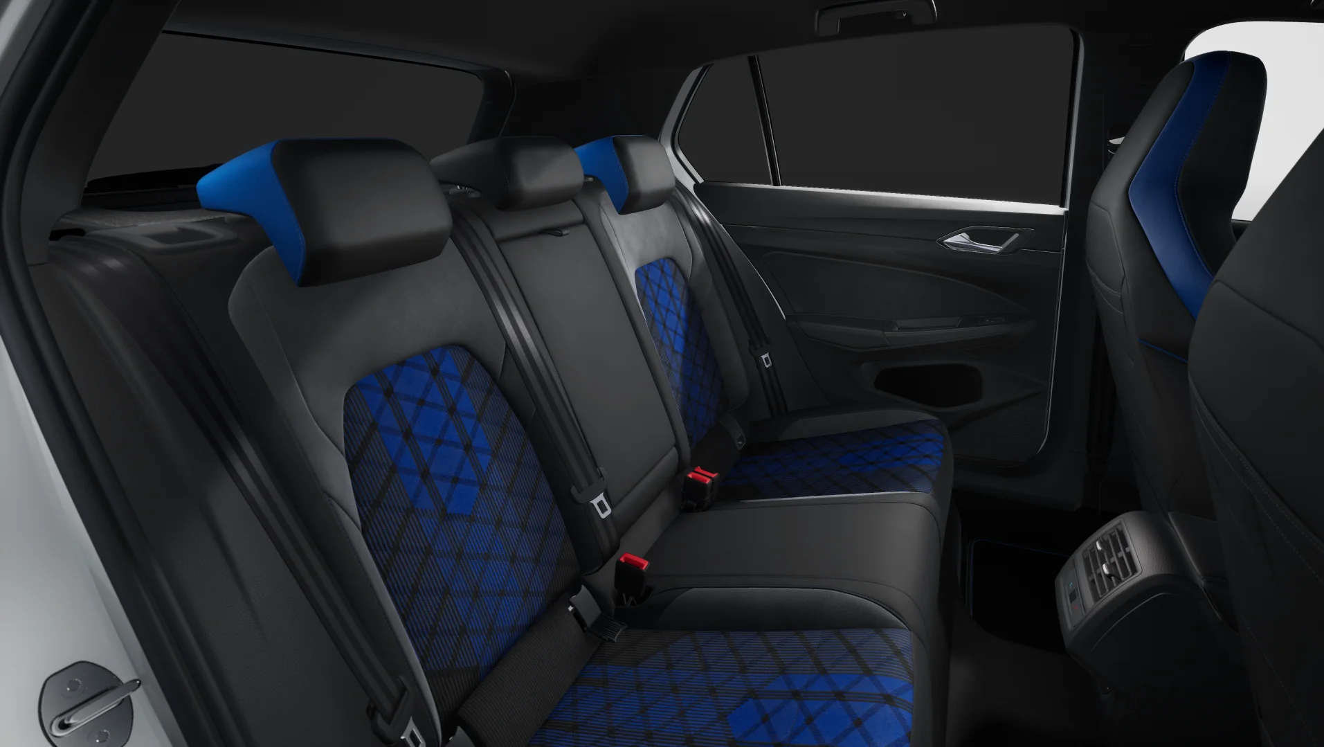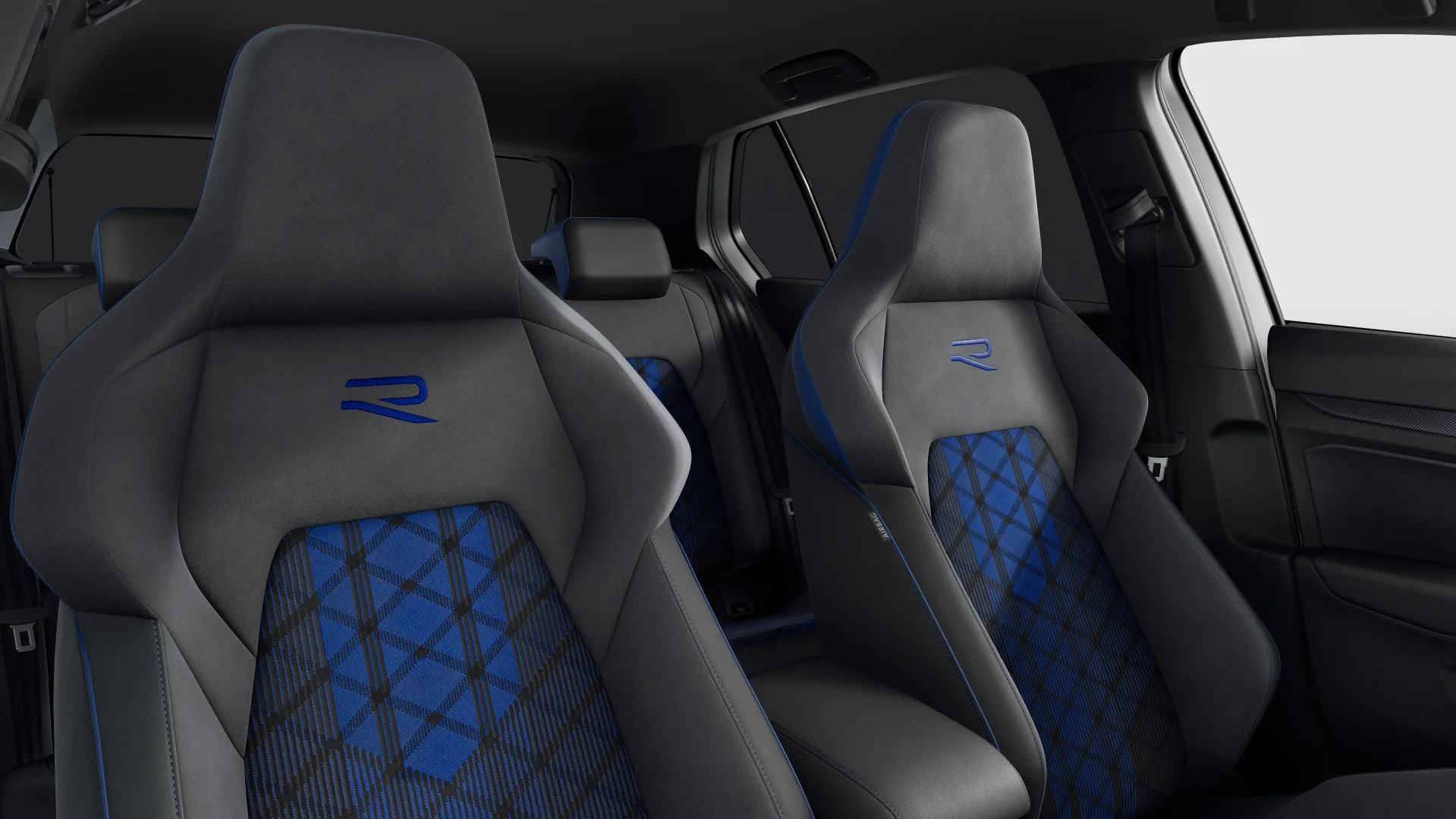 Wnętrze Golfa R to połączenie cyfrowych technologii i sportowego klimatu. Fotele R z logo, niebieskie przeszycia, kierownica z łopatkami i aluminiowe akcenty tworzą atmosferę torowego samochodu. Systemy multimedialne z ekranami wysokiej rozdzielczości oferują wygodny dostęp do ustawień pojazdu, trybów jazdy i rozrywki.