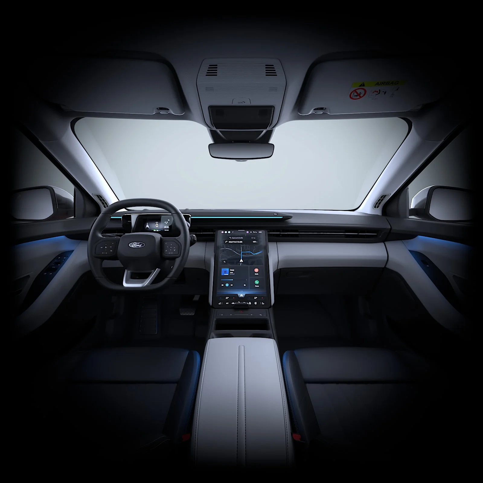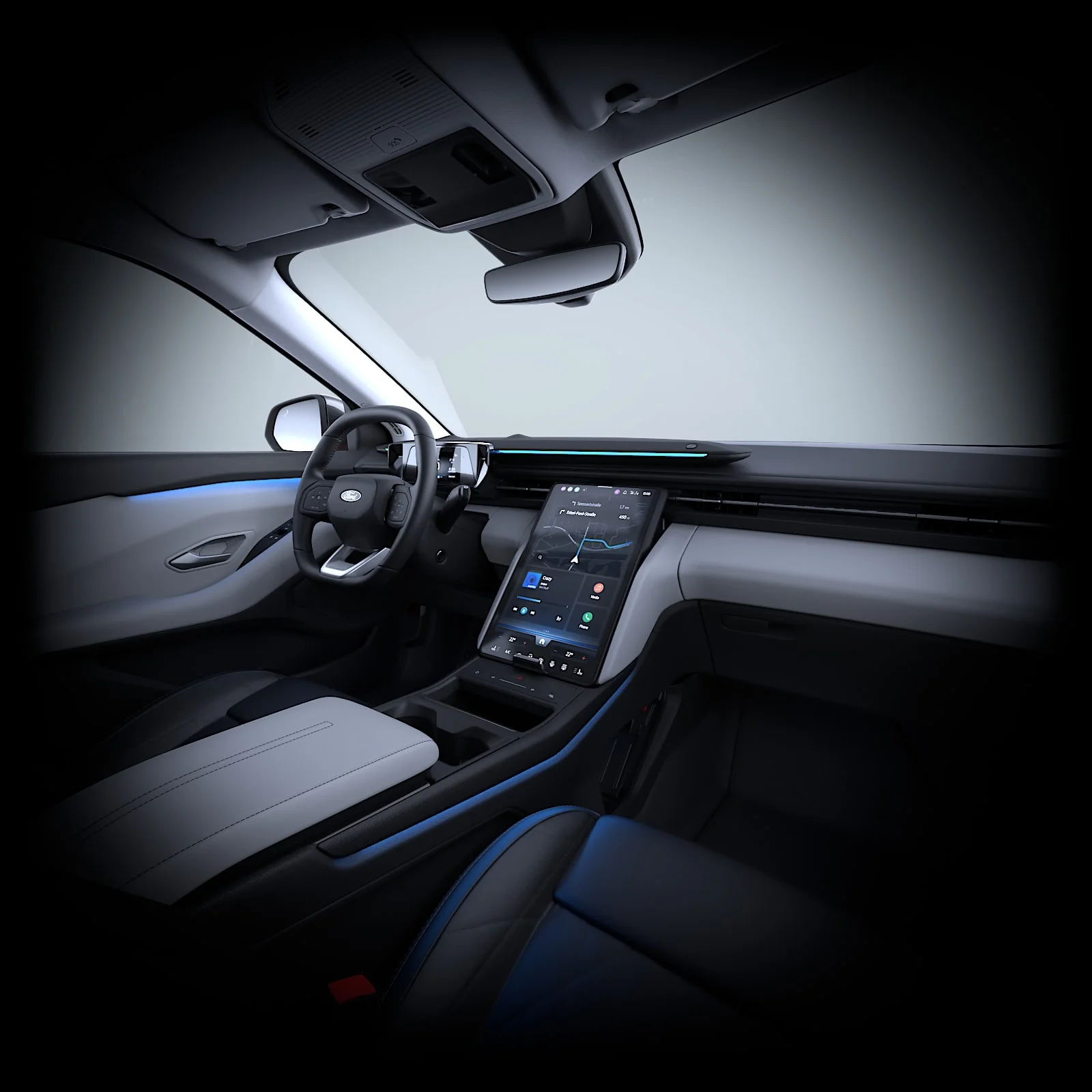 W kokpicie znajduje się cyfrowy zestaw wskaźników o przekątnej 5,3” oraz centralny ekran dotykowy 14,6” z możliwością regulacji położenia. Samochód oferuje bezprzewodowe ładowanie smartfona oraz system Ford KeyFree, który umożliwia bezkluczykowe otwieranie i uruchamianie pojazdu.