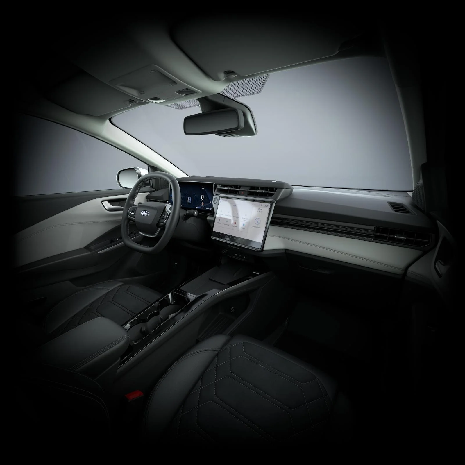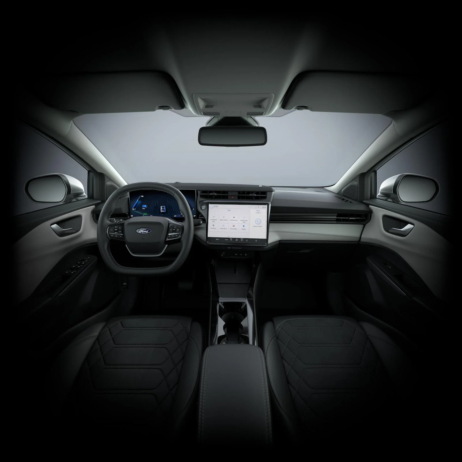Na pokładzie znajduje się 12" ekran dotykowy z systemem SYNC 4, nawigacją satelitarną, radiem DAB+, bezprzewodową obsługą Apple CarPlay i Android Auto oraz obsługą głosową w języku polskim. System audio B&O z 10 głośnikami i subwooferem gwarantuje wysoką jakość dźwięku. Dwa porty USB, Bluetooth® i aktualizacje OTA domykają komplet.
