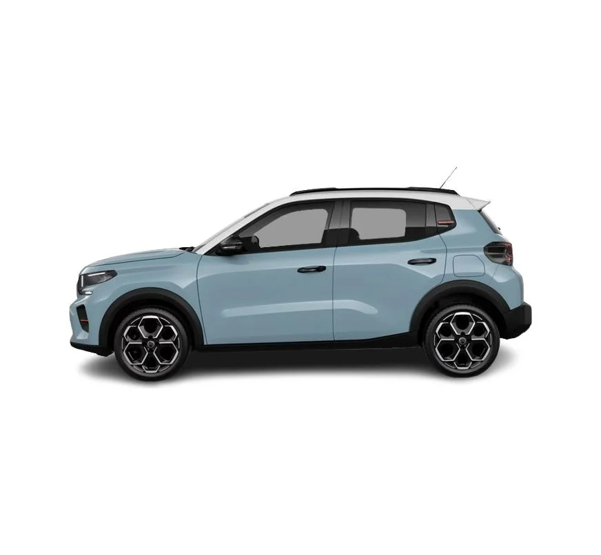 Citroën ë-C3 MAX to miejski crossover, który łączy kompaktowe wymiary z wyrazistym wyglądem. Charakterystyczny przód z nowym logo Citroëna, masywne zderzaki i kontrastowe elementy nadwozia nadają mu odważnego, nowoczesnego charakteru. Podniesiona sylwetka i praktyczne relingi dachowe dodają mu funkcjonalności w codziennym użytkowaniu.