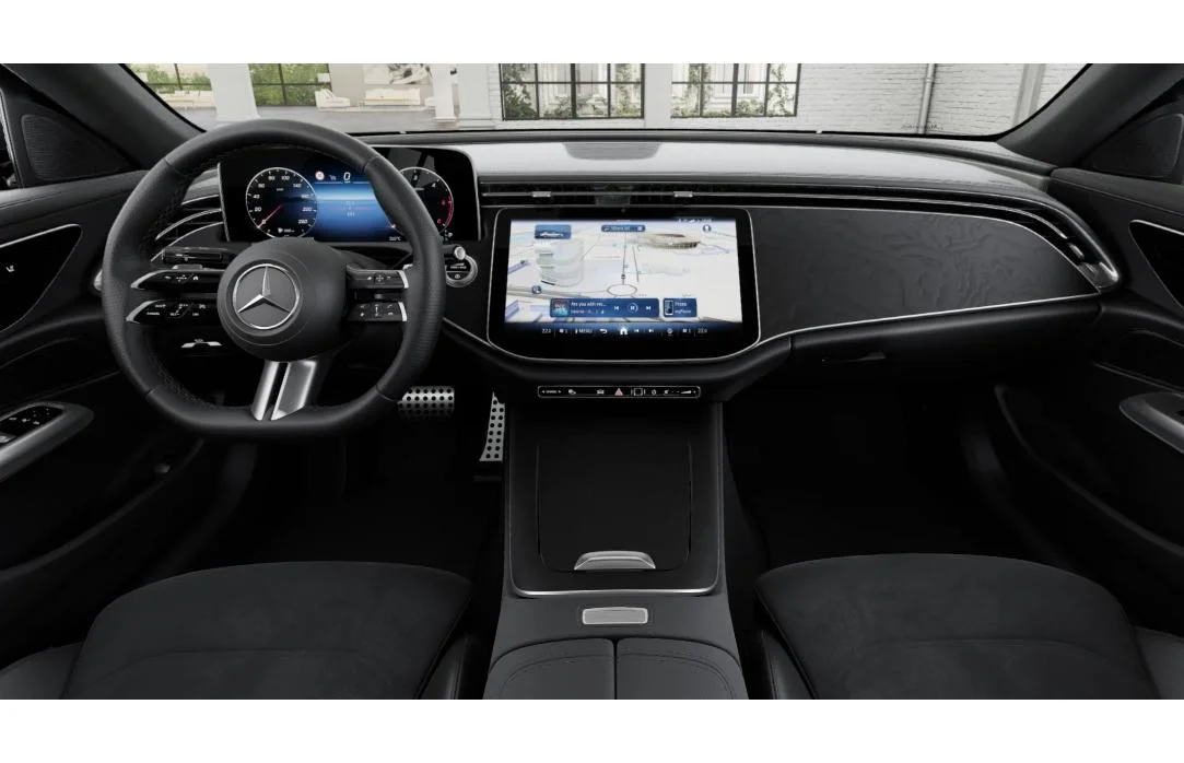 Mercedes E 220d 4MATIC AMG jest wyposażony w cyfrowy kokpit z systemem multimedialnym MBUX. Ekran dotykowy, cyfrowe zegary oraz obsługa głosowa pozwalają intuicyjnie zarządzać funkcjami pojazdu. Integracja Apple CarPlay i Android Auto umożliwia korzystanie z nawigacji i multimediów bezpośrednio z poziomu smartfona.