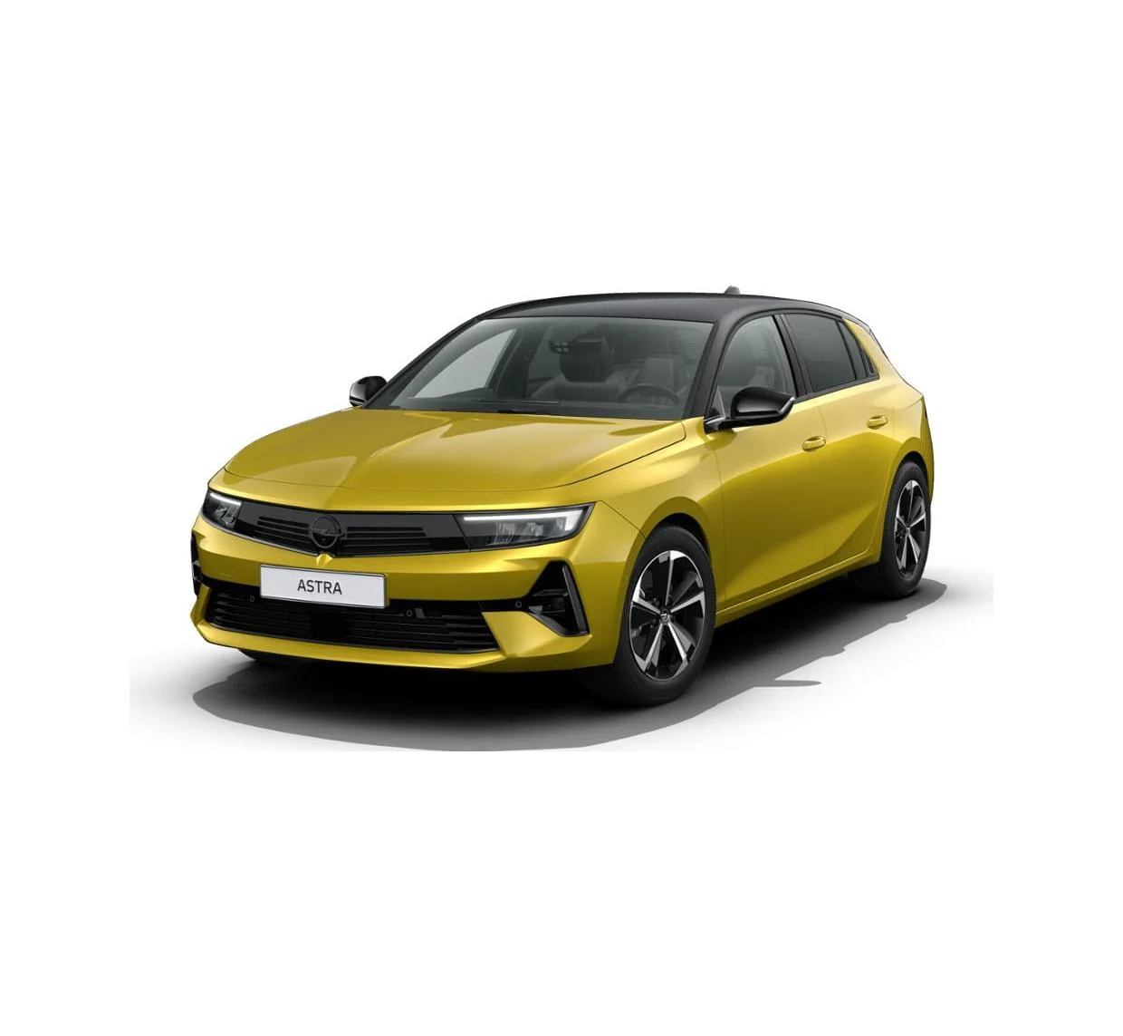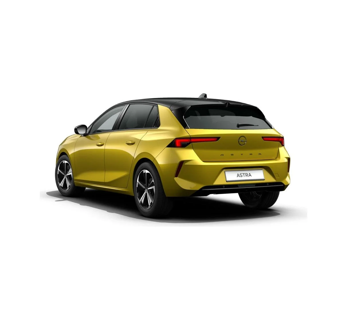 Opel Astra GS przyciąga wzrok sportową stylistyką i nowoczesnymi detalami. Żółty lakier Kult z kontrastowym czarnym dachem podkreśla jej dynamiczny charakter, a przedni zderzak w stylizacji GS Black dodaje agresywności. Przyciemniane szyby tylne i 17‑calowe felgi Admiral ze stopów lekkich dopełniają wyjątkowego wyglądu tego miejskiego hatchbacka.