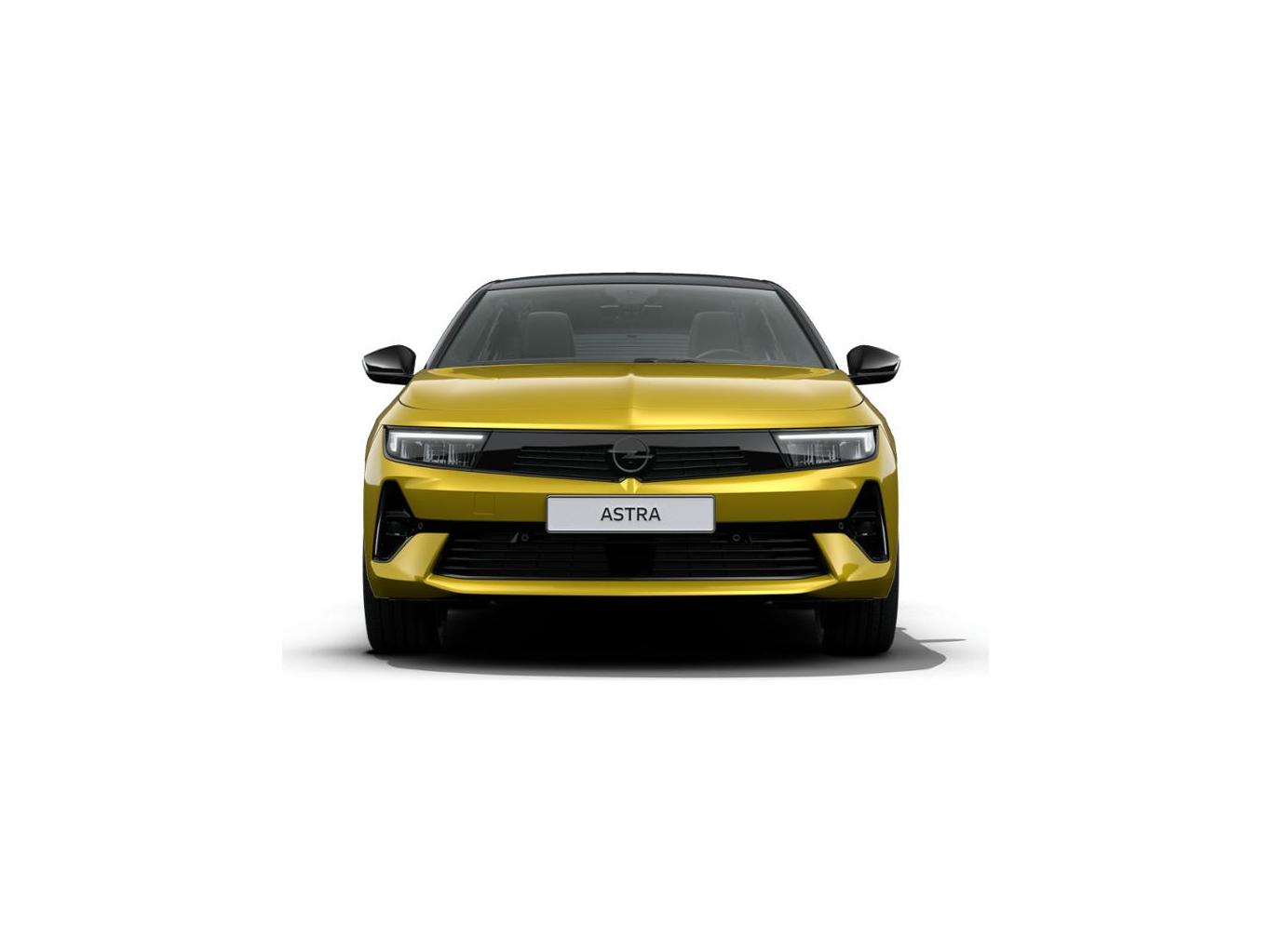 Opel Astra GS przyciąga wzrok sportową stylistyką i nowoczesnymi detalami. Żółty lakier Kult z kontrastowym czarnym dachem podkreśla jej dynamiczny charakter, a przedni zderzak w stylizacji GS Black dodaje agresywności. Przyciemniane szyby tylne i 17‑calowe felgi Admiral ze stopów lekkich dopełniają wyjątkowego wyglądu tego miejskiego hatchbacka.