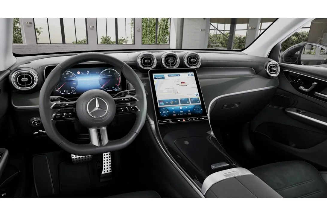 Kabina GLC oferuje wysoki komfort podróży dzięki sportowym fotelom, podgrzewanym siedzeniom przednim i eleganckiemu wykończeniu z elementami chromowanymi. Przestronne wnętrze uzupełnia elektrycznie otwierana klapa bagażnika EASY‑PACK, praktyczne schowki i regulowane oparcia tylnej kanapy. Oświetlenie Ambient i podsufitka w jasnym kolorze tworzą przyjemną atmosferę podczas każdej jazdy.