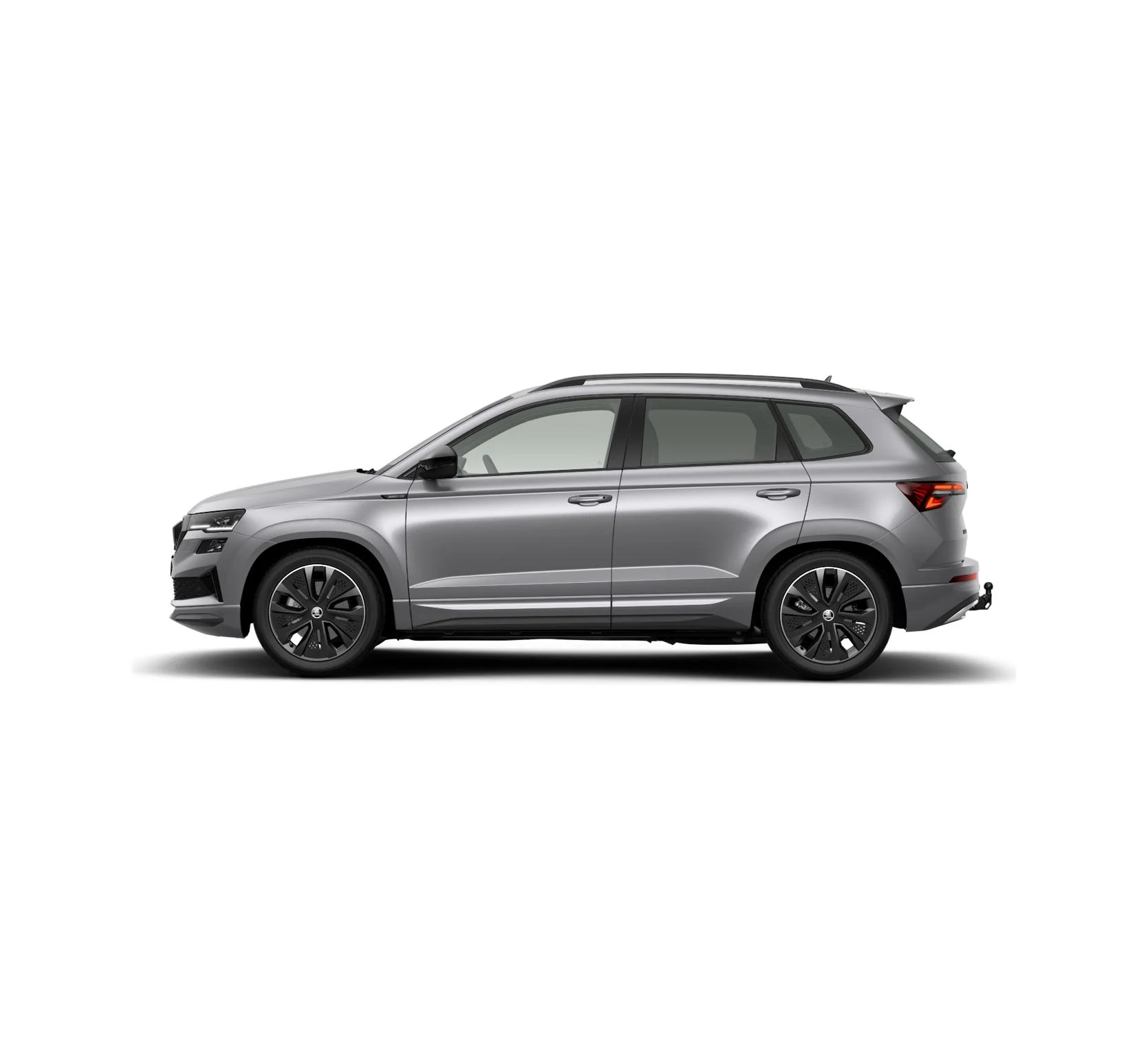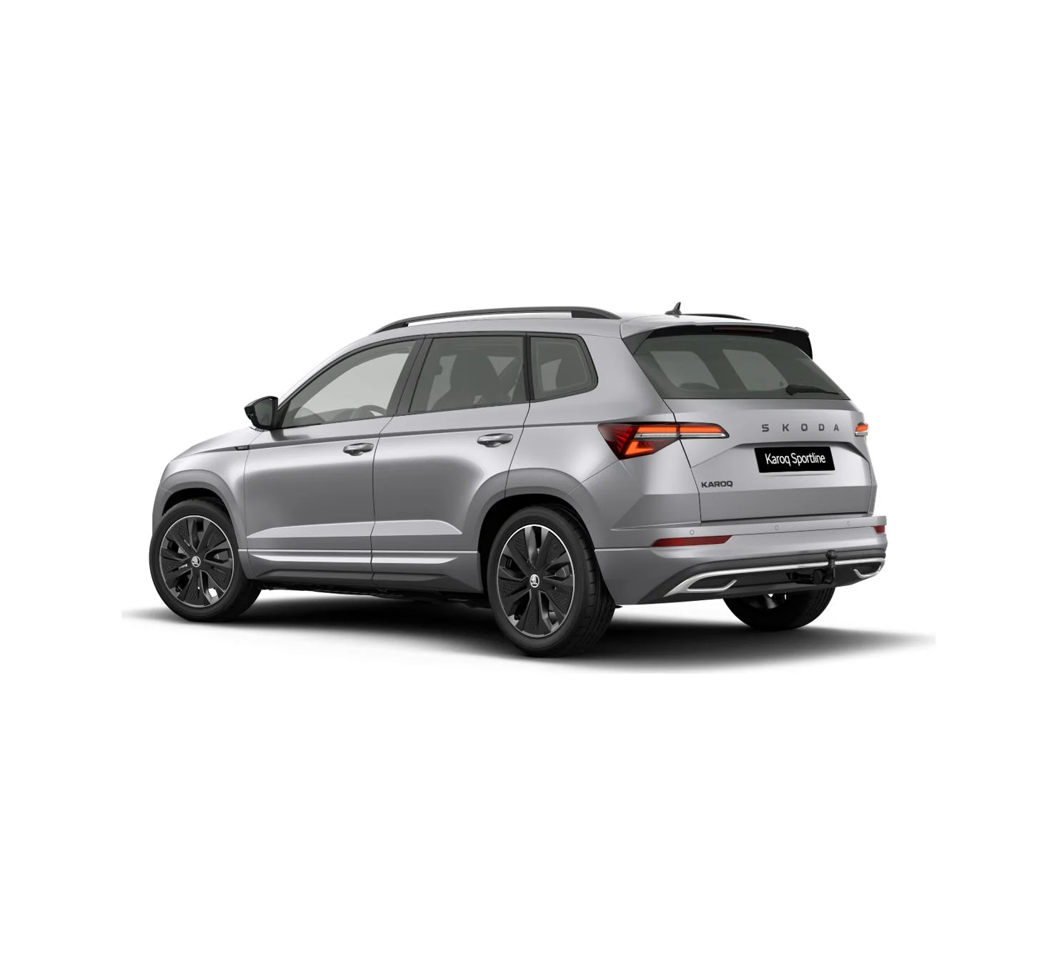 Škoda Karoq Sportline wyróżnia się nowoczesną i dynamiczną stylistyką, w której nie brakuje sportowych akcentów. Czarny grill, błyszczące relingi dachowe, efektowne 18-calowe obręcze Procyon i sportowy zderzak nadają mu pewności siebie na drodze. To SUV, który łączy elegancję z nutą agresji w wyglądzie.