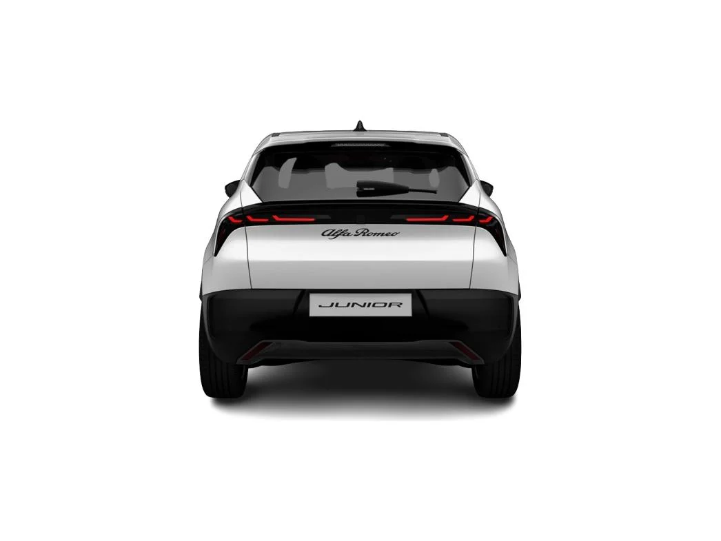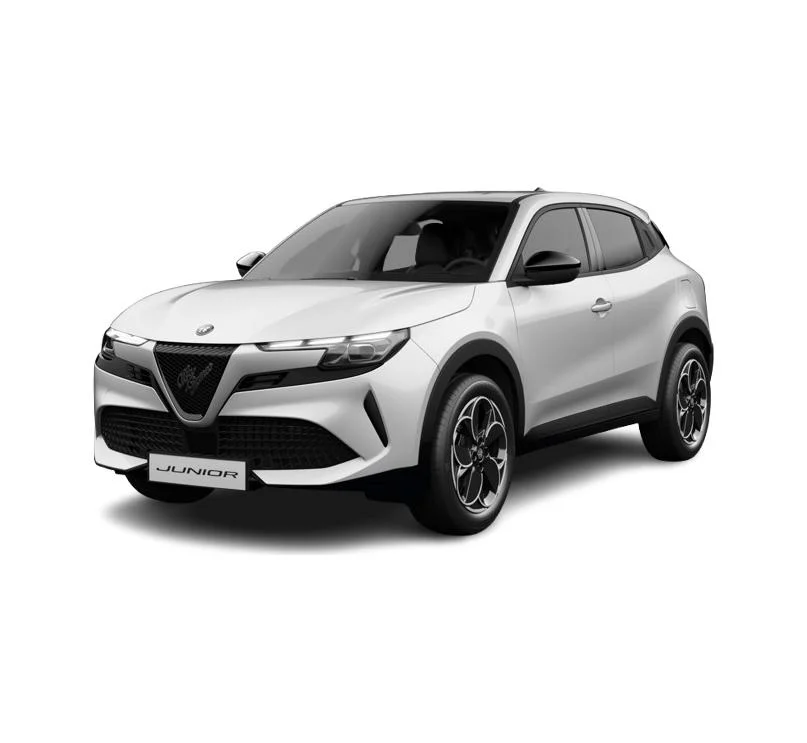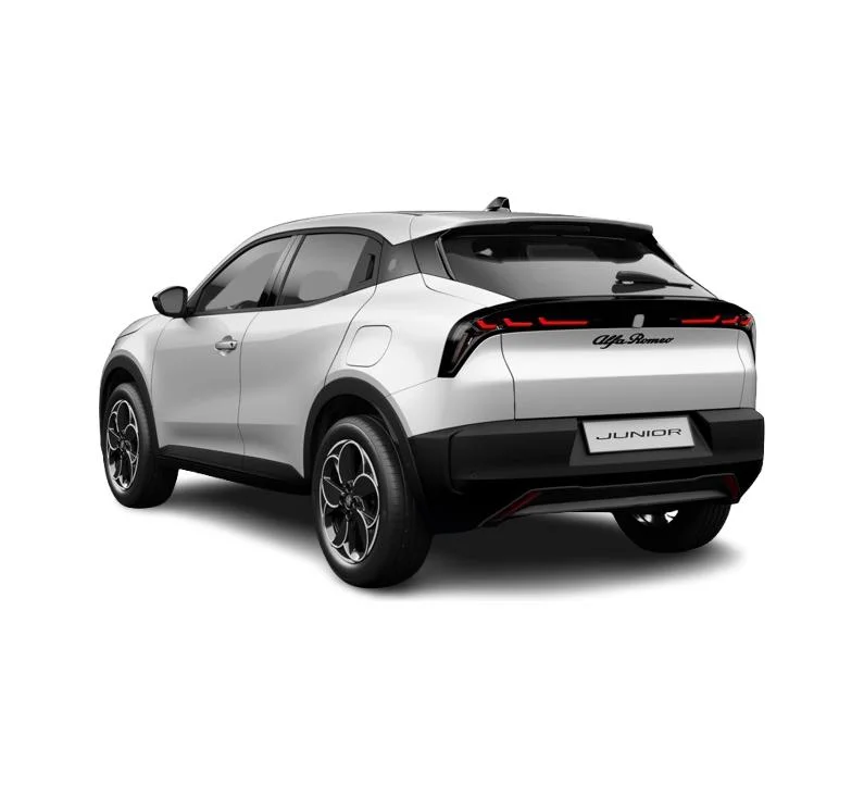 Alfa Romeo Junior Elettrica to kompaktowy SUV, który łączy włoski styl z nowoczesną technologią. Smukłe linie nadwozia, charakterystyczny grill „Scudetto Leggenda” i reflektory Full-LED nadają autu wyrazisty charakter. Czarne lusterka zewnętrzne i 18-calowe aluminiowe obręcze „Petali” podkreślają sportowy wygląd, a pastelowy lakier Sempione dodaje elegancji.