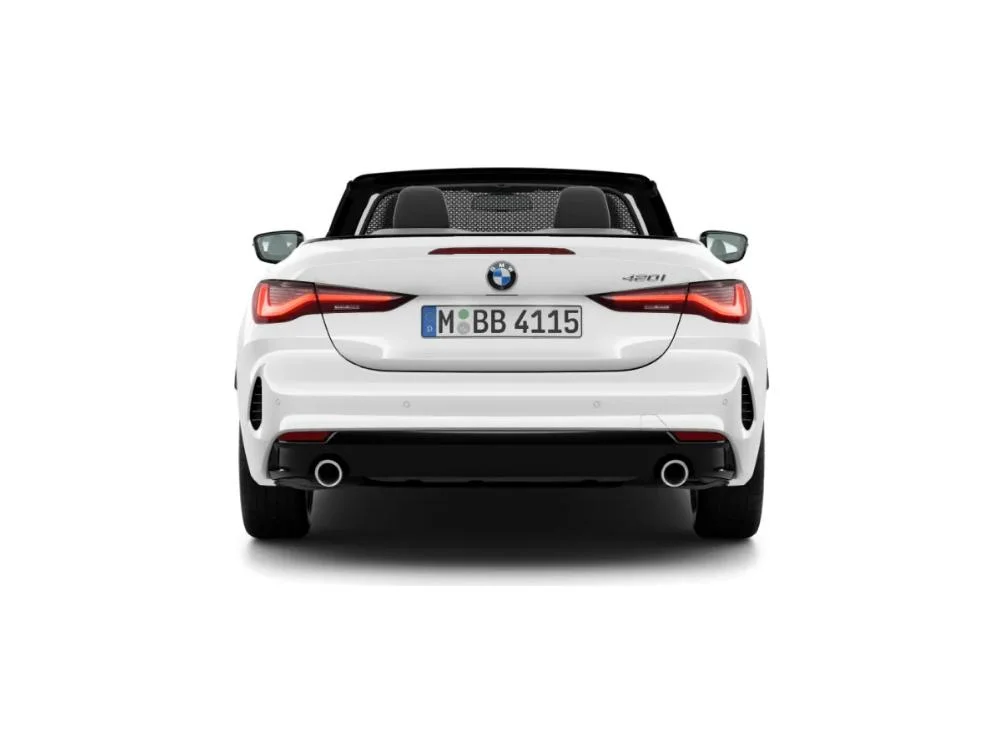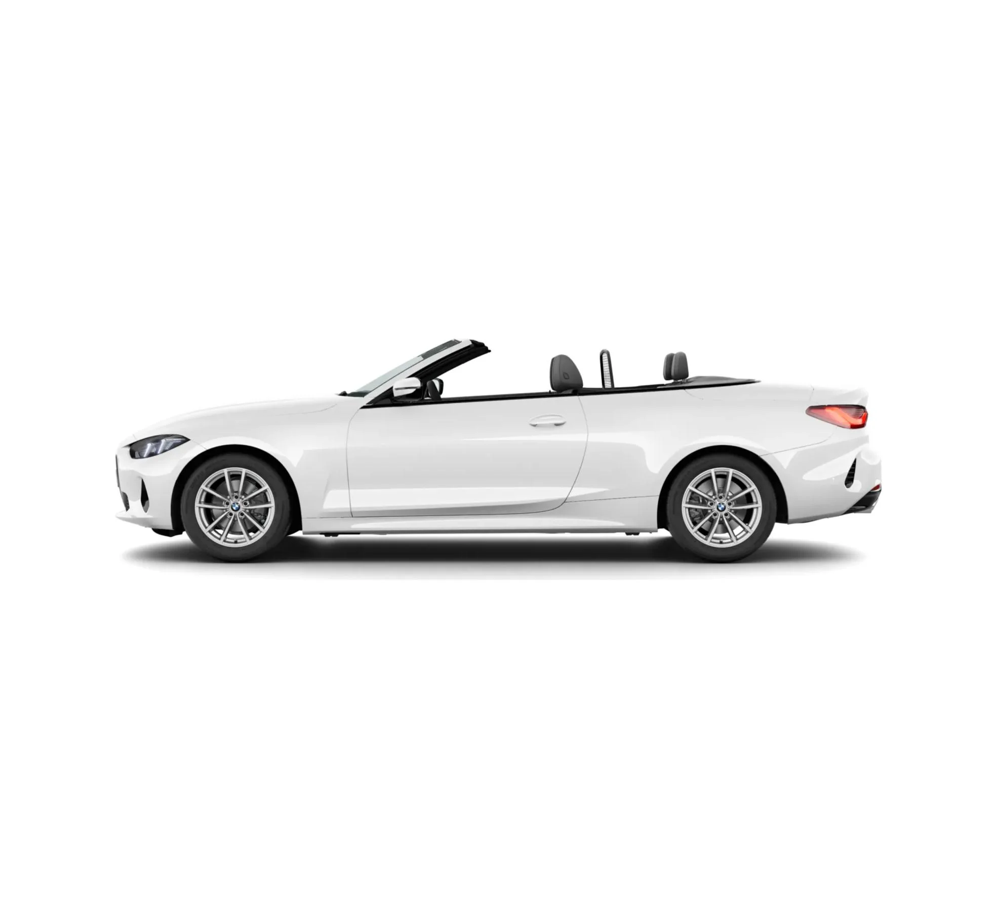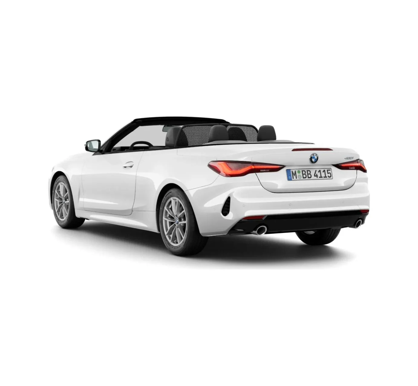BMW 420i Cabrio w podstawowej linii to połączenie klasycznej elegancji z radością jazdy pod gołym niebem. Smukła sylwetka, czarne detale Shadowline i sportowe proporcje sprawiają, że auto prezentuje się dynamicznie. Biel alpejska nadaje mu ponadczasowego stylu, który podkreśla prestiż marki.