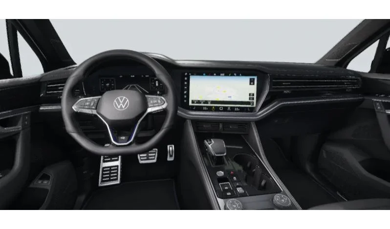 Na pokładzie Touarega R znajdziesz system Infotainment Premium z 15-calowym ekranem dotykowym, cyfrowy kokpit Digital Cockpit 12”, a także bezprzewodowy App Connect. Kierowca ma do dyspozycji systemy VW Connect i Car-Net, a także ładowarkę indukcyjną i nagłośnienie z ośmioma głośnikami. To technologiczne centrum zapewniające rozrywkę i wygodę w każdej trasie.