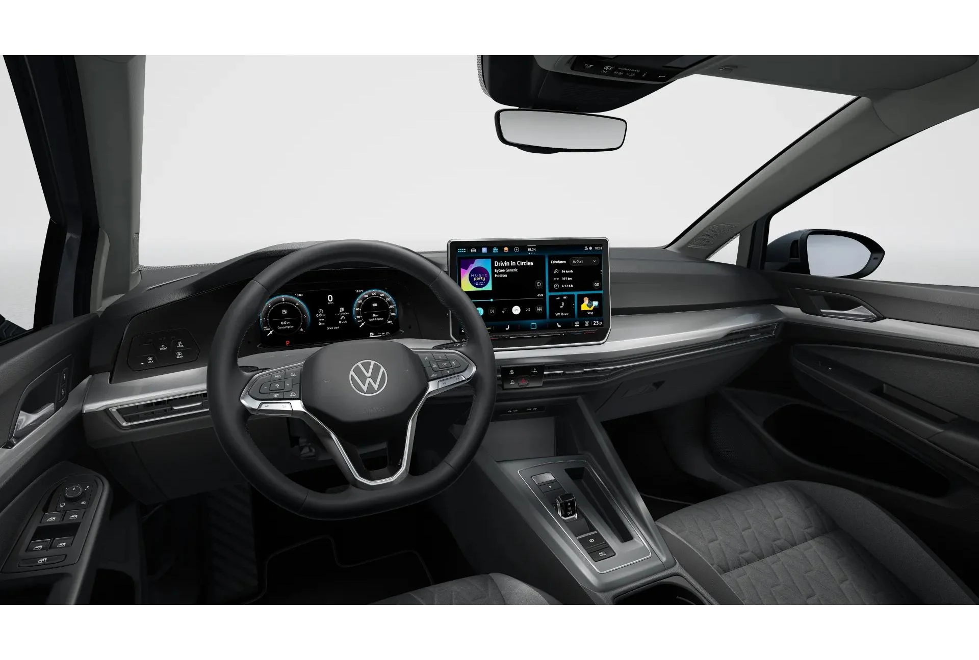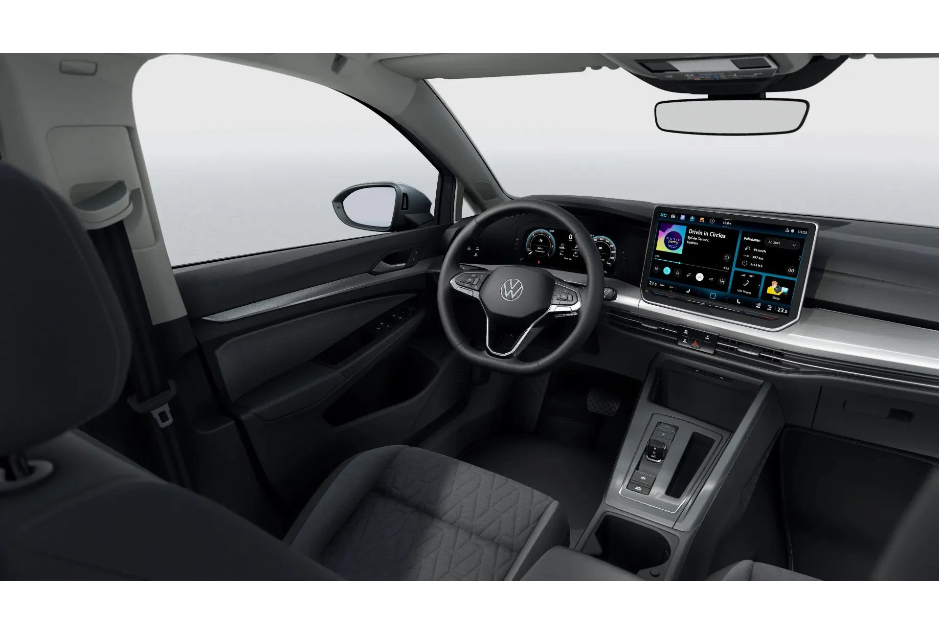 Na pokładzie znajdziemy cyfrowy kokpit Digital Cockpit Pro, system multimedialny Ready2Discover z 12,9-calowym ekranem i funkcją App Connect bezprzewodowego. Do tego kamera cofania, czujniki parkowania, adaptacyjny tempomat, system Lane Assist, Front Assist i Side Assist dbają o bezpieczeństwo w każdych warunkach. Oświetlenie LED, ambientowe wnętrze i indukcyjna ładowarka telefonu to dodatki podnoszące wygodę użytkowania.