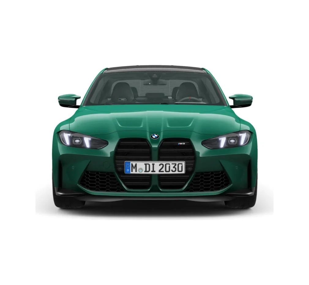 BMW M3 Sedan łączy elegancję klasycznej limuzyny z agresywnymi, sportowymi akcentami. Poszerzone nadkola, potężne wloty powietrza i charakterystyczne pionowe „nerki” podkreślają muskularny charakter auta. Aerodynamiczne dodatki M oraz opcjonalne detale z włókna węglowego wzmacniają jego wyścigowy wizerunek. We wnętrzu znajdziemy sportowe fotele M, kierownicę o grubym wieńcu i wysokiej jakości skórzane wykończenia, które łączą luksus z czystą funkcjonalnością.