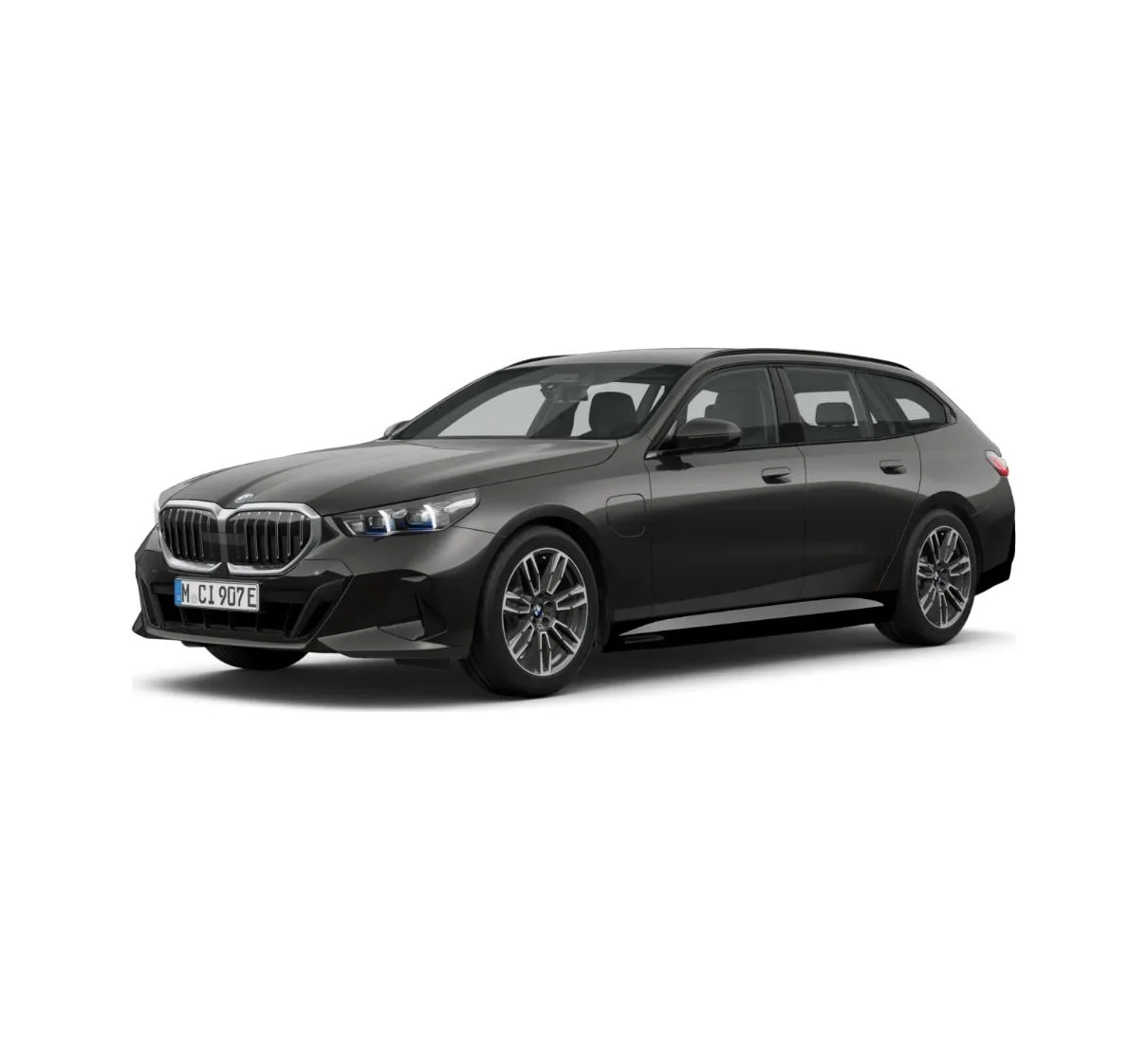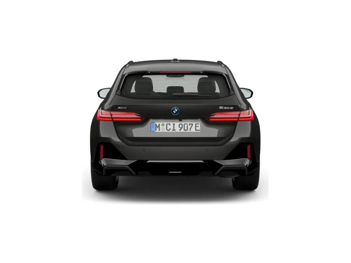 BMW 530e xDrive Touring w pakiecie M Sport łączy elegancję z wyrazistym charakterem sportowym. Sportowe zderzaki M, czarne akcenty Shadowline i 19-calowe felgi podkreślają muskularną sylwetkę auta. Lakier Sophisto Grey z brylantowym połyskiem dodaje mu prestiżu i wyjątkowego stylu.