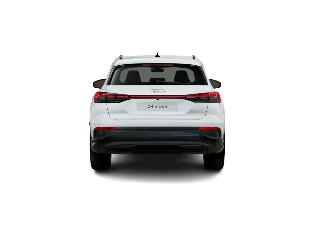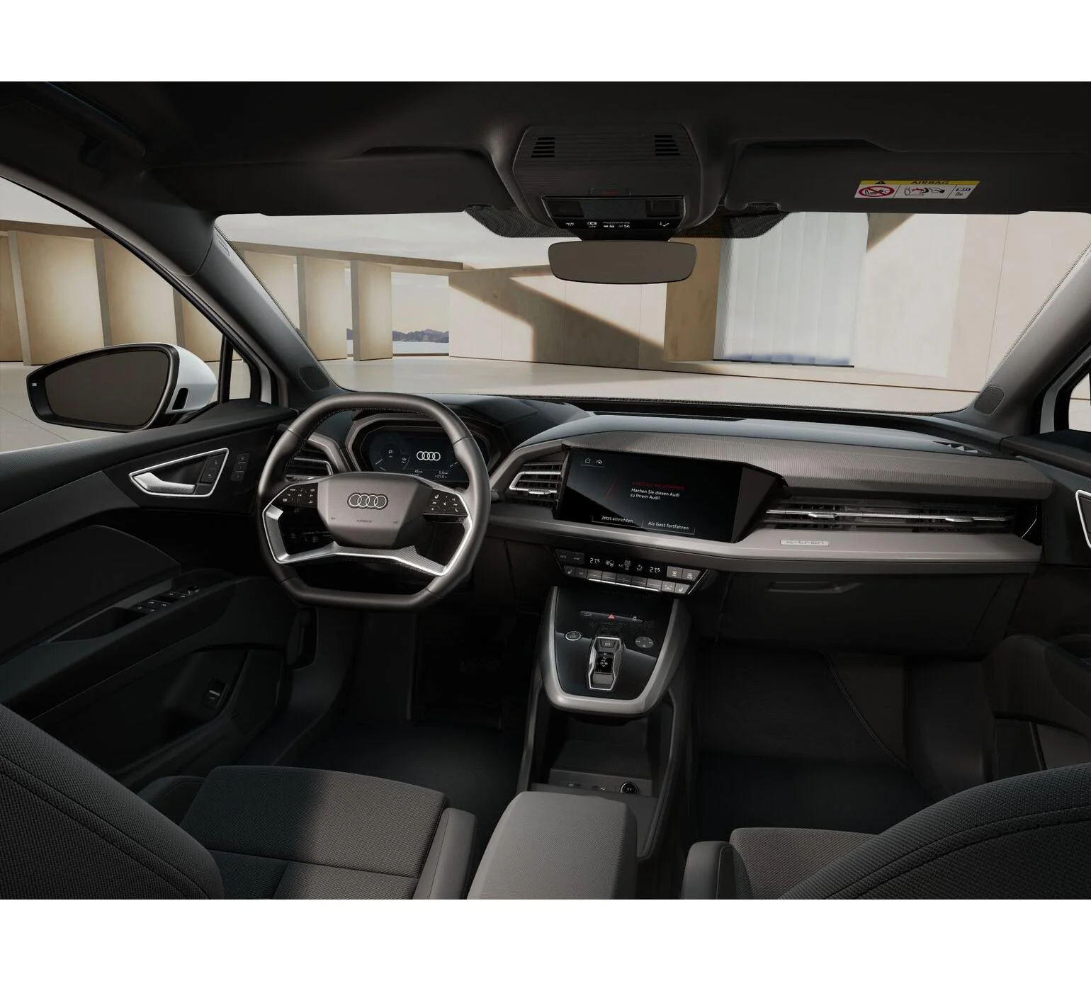 Wnętrze Q4 e-tron 45 to idealne połączenie funkcjonalności i elegancji. Sportowe fotele obszyte tkaniną w kolorze czarnym, aluminiowe aplikacje dekoracyjne oraz ambientowe oświetlenie tworzą luksusową atmosferę. Dzięki platformie MEB wnętrze oferuje ogromną ilość miejsca – zarówno dla pasażerów, jak i bagażu (520–1490 litrów). Elektrycznie otwierana pokrywa bagażnika i system bezkluczykowego dostępu ułatwiają codzienne użytkowanie.
