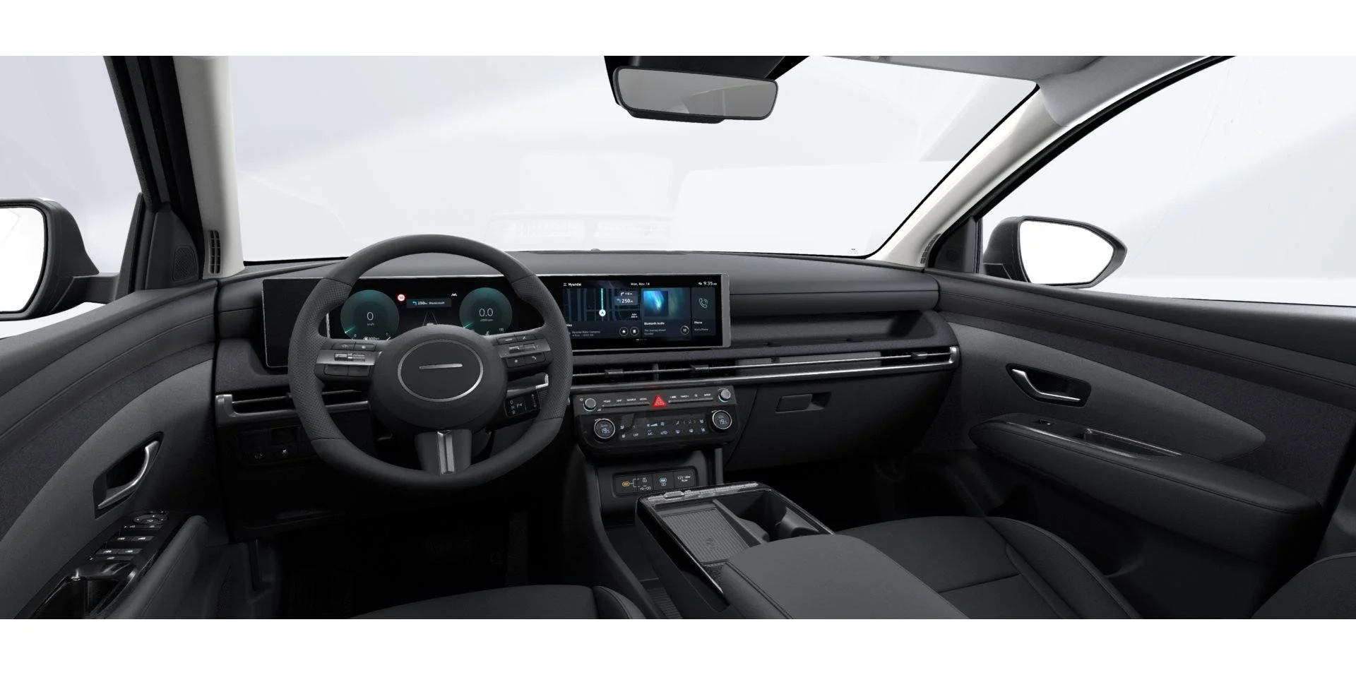Kabina Tucsona to harmonijne połączenie przestronności, ergonomii i nowoczesnych rozwiązań. Wysokiej jakości materiały, cyfrowe zegary, duży ekran systemu multimedialnego oraz wygodne fotele gwarantują przyjemność z każdej podróży – niezależnie od dystansu.
