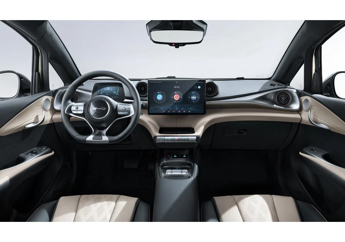 W środku Dolphin oferuje zaskakująco dużo miejsca – zarówno z przodu, jak i z tyłu. Wersja Comfort zapewnia komfortowe fotele, nowoczesny design kokpitu i dużą ilość praktycznych schowków. Centralnym punktem deski rozdzielczej jest obracany ekran dotykowy, który umożliwia łatwą obsługę multimediów i ustawień auta.