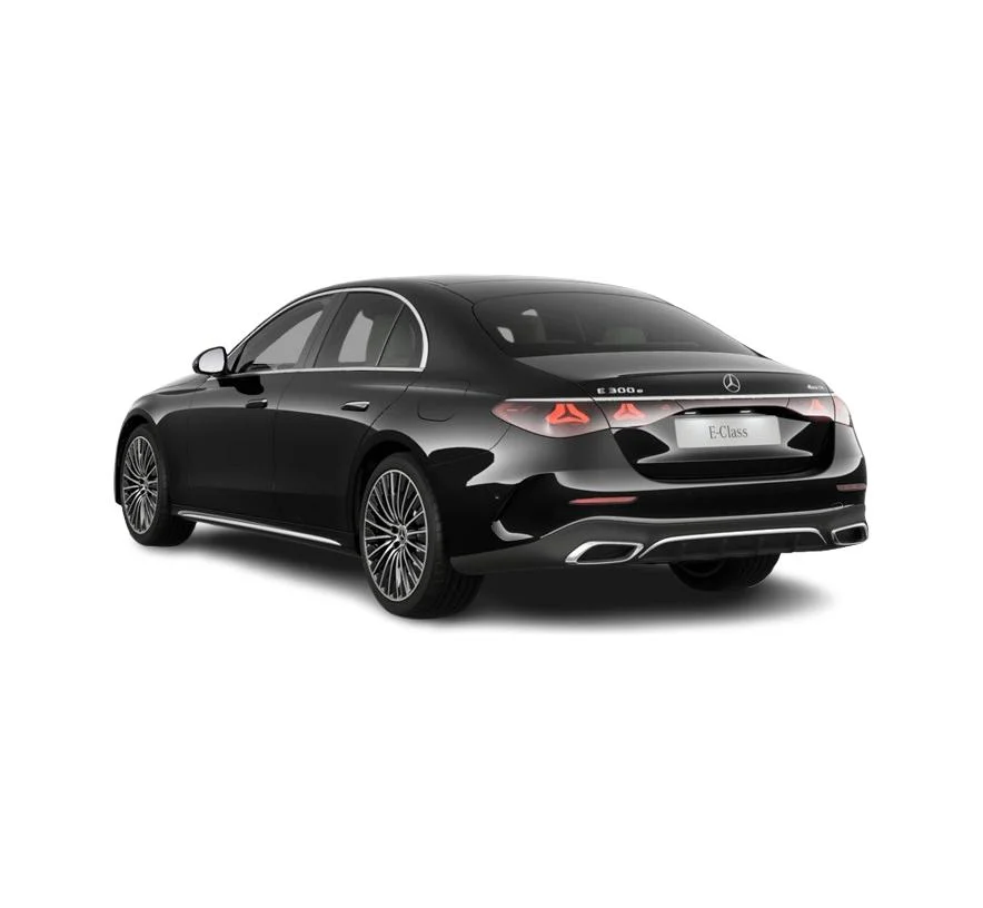 E 300 e 4MATIC Sedan łączy ponadczasowy styl Mercedesa z nowoczesnymi akcentami linii EQ. Elegancka sylwetka, dynamiczne proporcje i wyrafinowane detale – od podświetlanej osłony chłodnicy po reflektory DIGITAL LIGHT – tworzą obraz auta, które wygląda tak dobrze, jak się prowadzi. Linia AMG nadaje mu sportowego charakteru, a 20-calowe felgi i kolor obsydianowej czerni podkreślają jego prestiż.