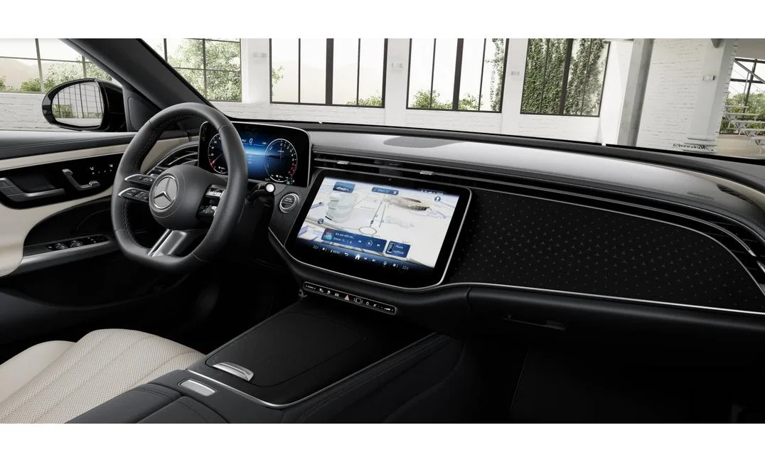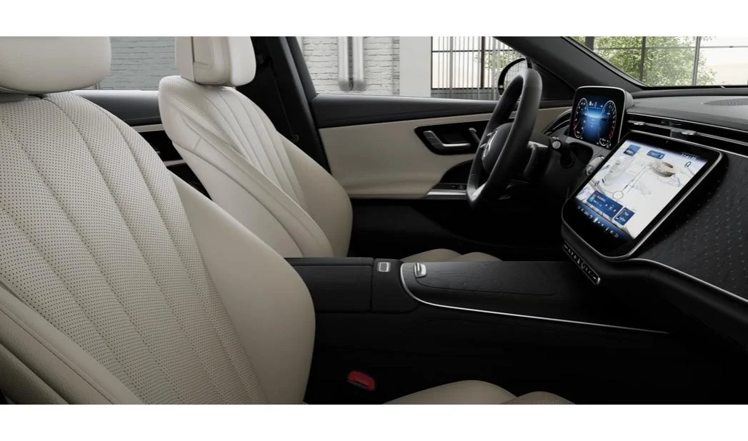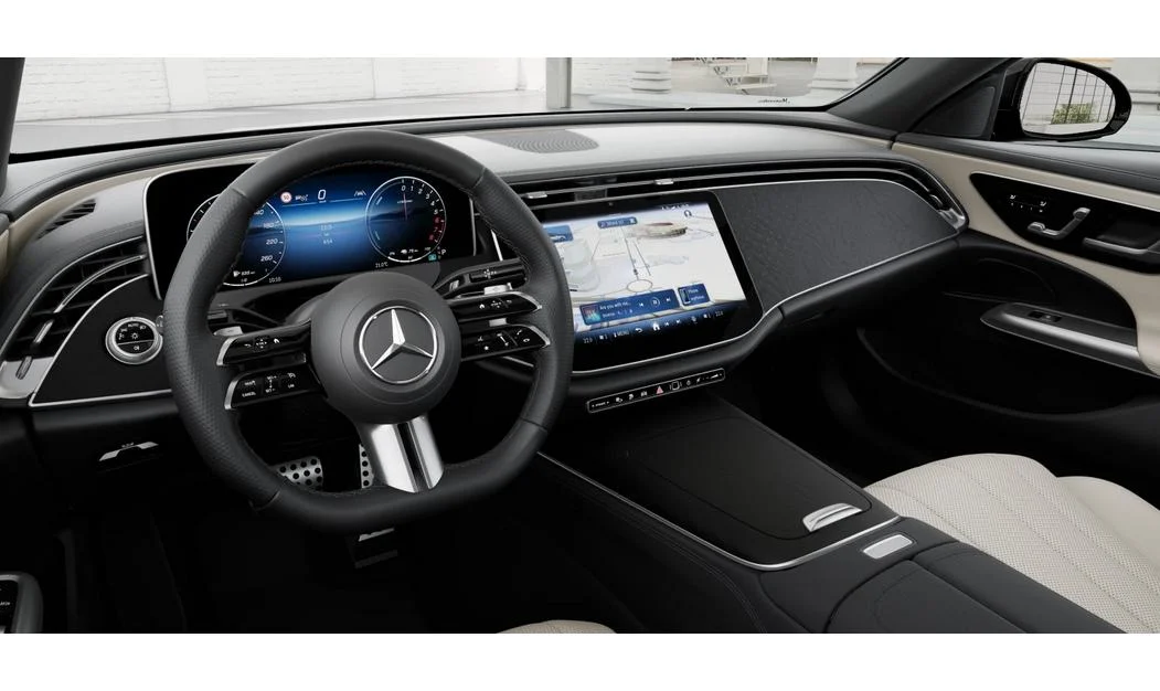 Kabina E 300 e to połączenie luksusu i nowoczesnej ergonomii. Komfortowe, wentylowane fotele z pamięcią ustawień, klimatyzacja THERMATIC i ambientowe oświetlenie tworzą wyjątkową atmosferę. Wykończenie z drewna jesionowego o otwartych porach oraz tapicerka z ekologicznej skóry ARTICO w tonacji beż macchiato podkreślają klasę auta. Z kolei system Energizing Air Control dba o jakość powietrza w kabinie.