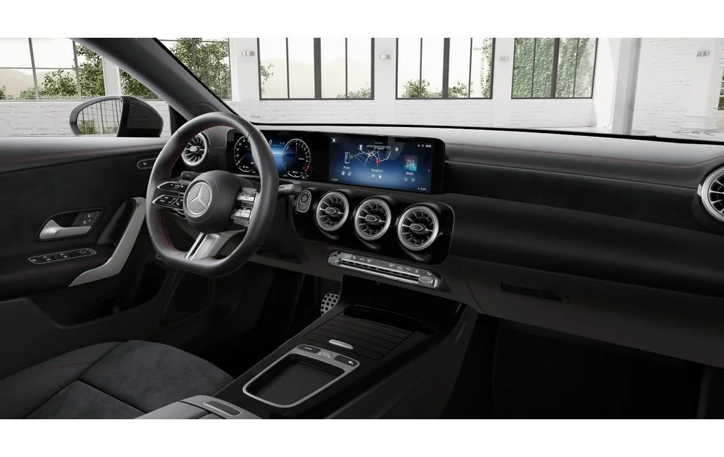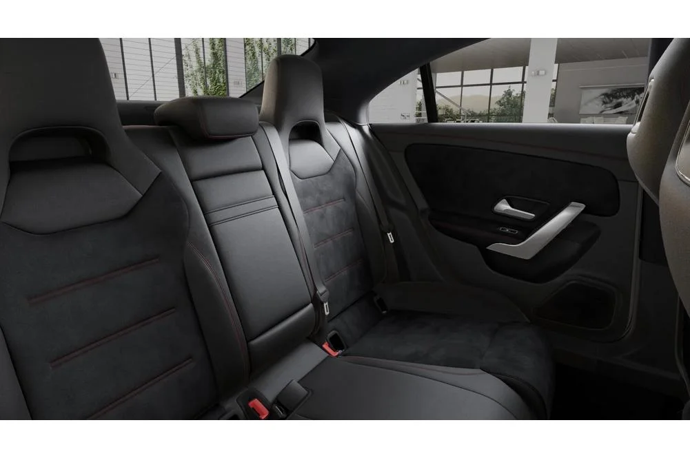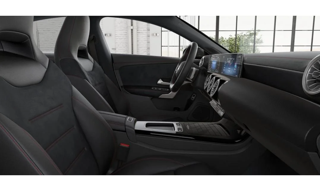 W kabinie CLA 250 e znajdziesz połączenie nowoczesnej technologii z luksusem. Sportowe fotele z tapicerką ARTICO i mikrofibrą MICROCUT oferują świetne podparcie, a ambientowe oświetlenie i czarna podsufitka budują sportową atmosferę. Komfort codziennej jazdy podnosi klimatyzacja THERMATIC, podgrzewane siedzenia oraz pakiet komfortowych siedzeń. Praktyczne rozwiązania, takie jak składane oparcie tylnej kanapy i przestrzeń bagażowa o pojemności 395 litrów, czynią ten model idealnym na co dzień.