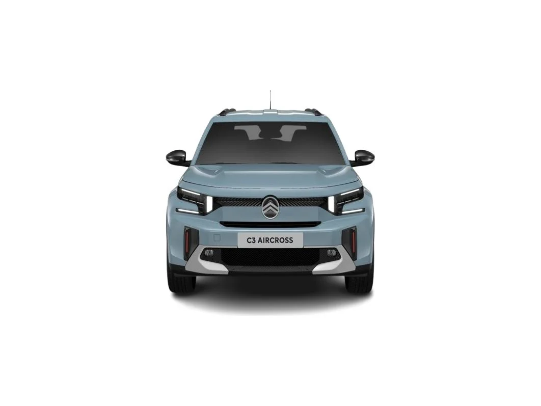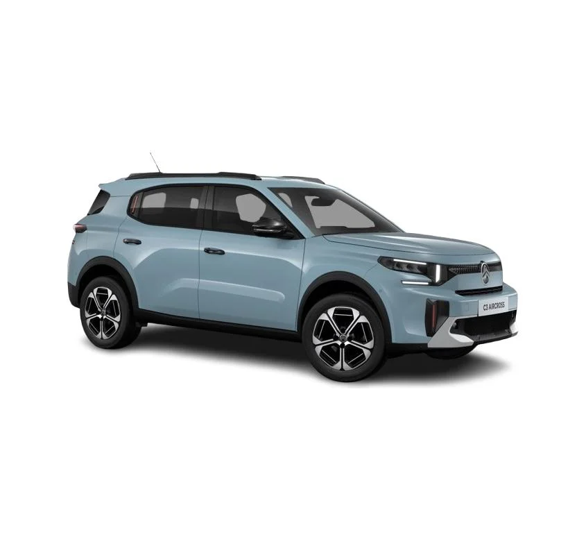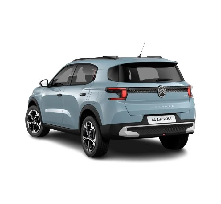 Nowy Citroën C3 Aircross w wersji MAX SUV to model, który łączy muskularny wygląd z typową dla marki miękkością linii. Charakterystyczne światła LED w kształcie litery „Y”, 17-calowe felgi aluminiowe Aragonite i kontrastowe akcenty w kolorze Infra Red nadają mu nowoczesnego i dynamicznego stylu. Kolor Bleu Monte Carlo podkreśla jego lekki, miejski charakter, a podwyższone zawieszenie zapewnia pewność w każdych warunkach.